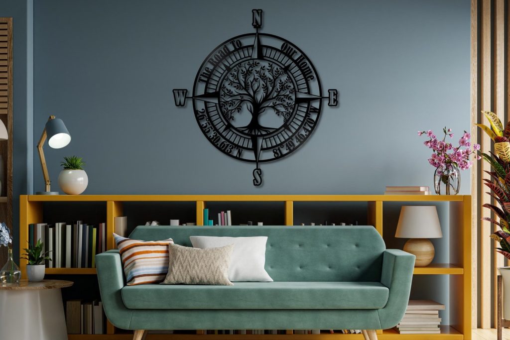 Personalized Compass Metal Wall Decor . Life Tree Themed.