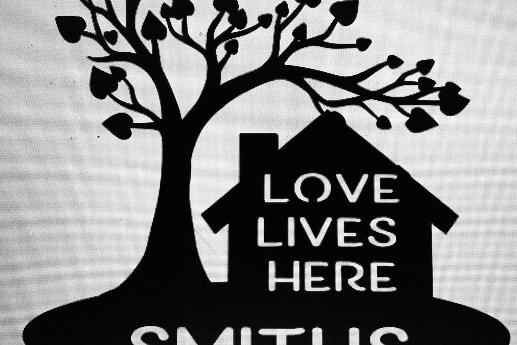 Personalized Love Lives Here Metal Sign – Weatherproof
