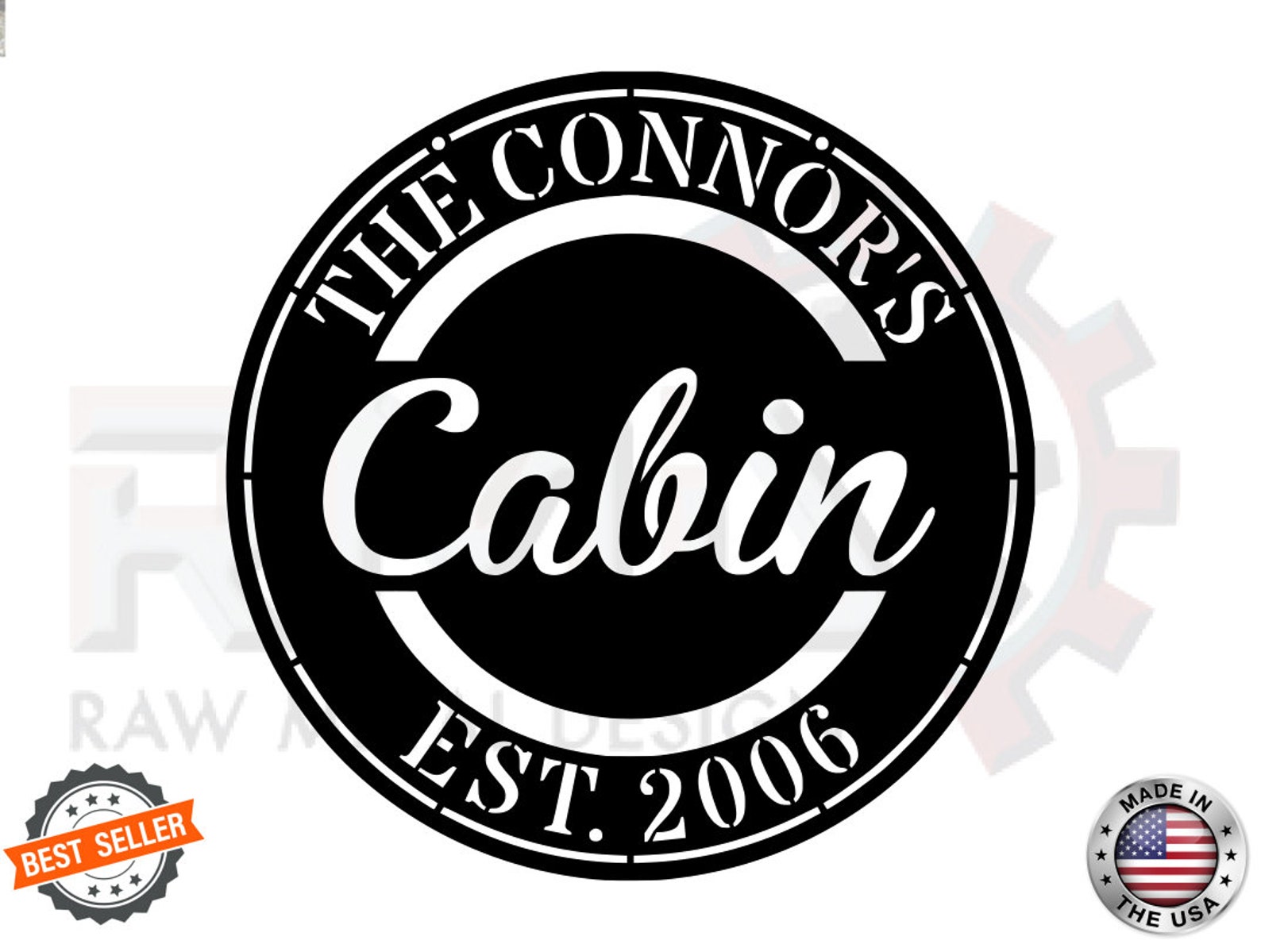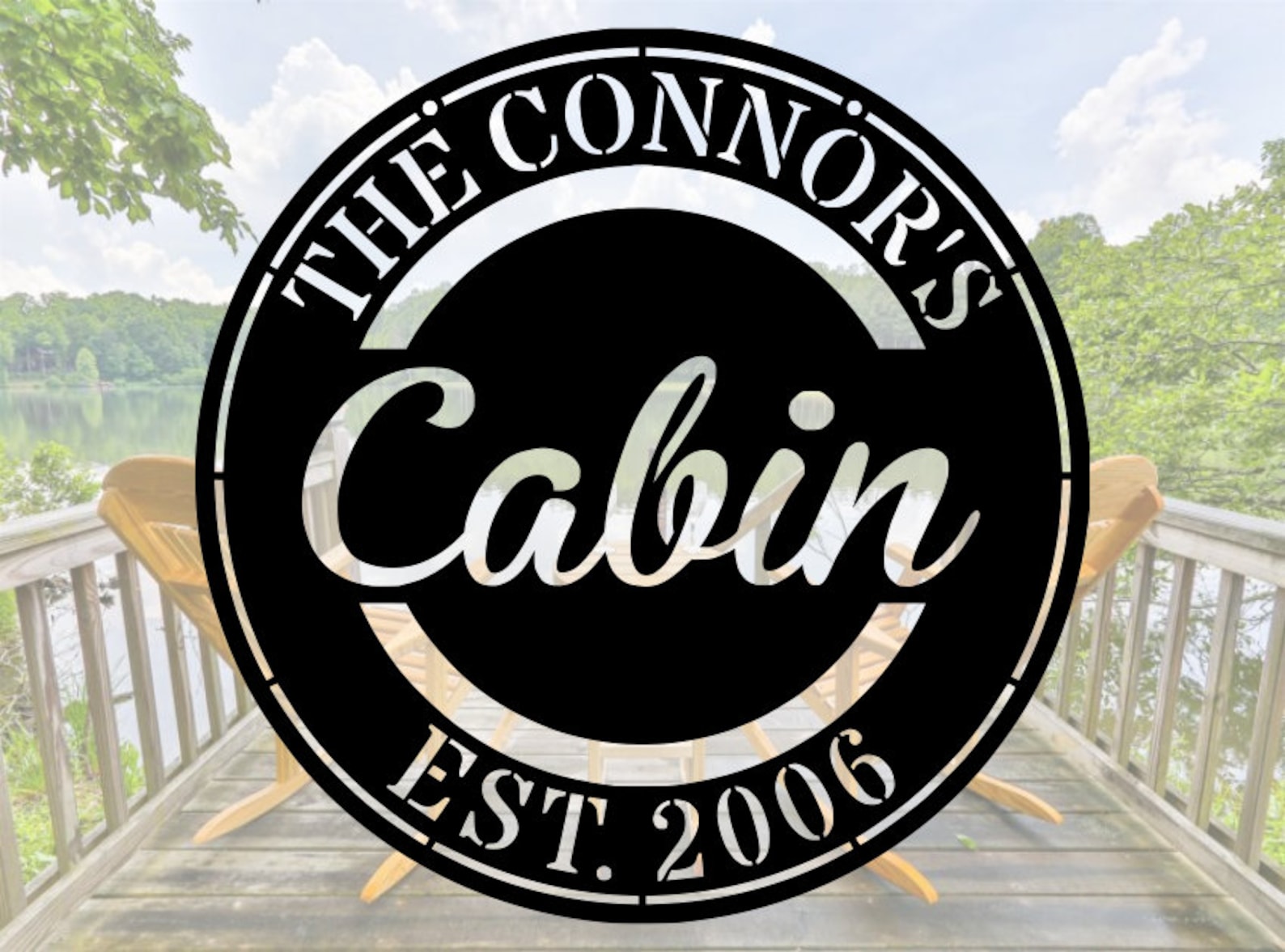 Be the first to review “Personalized Metal Cabin Sign with Mountain View”