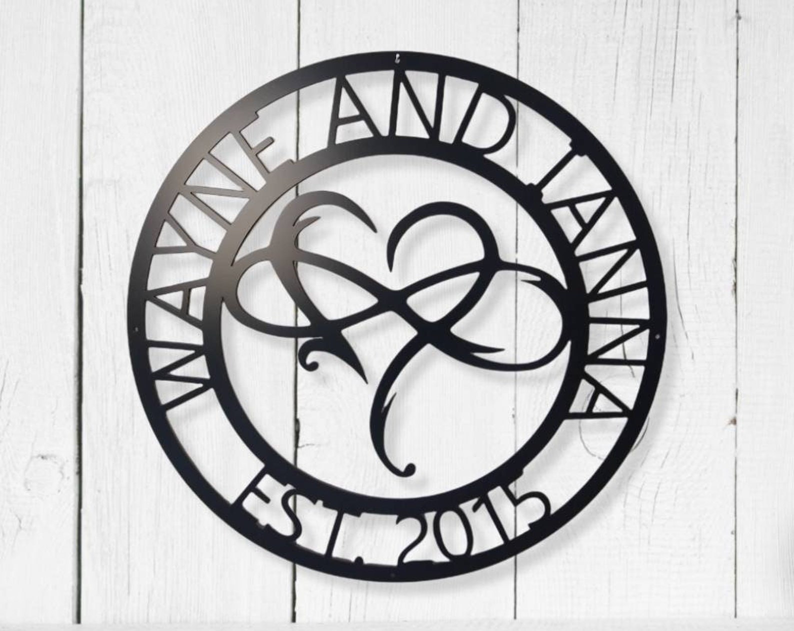 This custom metal Est sign is a popular piece! It is created out of 16G carbon steel and is finished with a durable powder coat. It can be displayed indoors or out! We have a variety of colors and sizes to choose from. If you would like to do a custom size, send us a direct message. This piece comes equipped with 2 holes for an easy hanging experience.