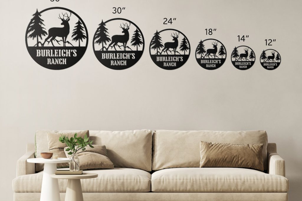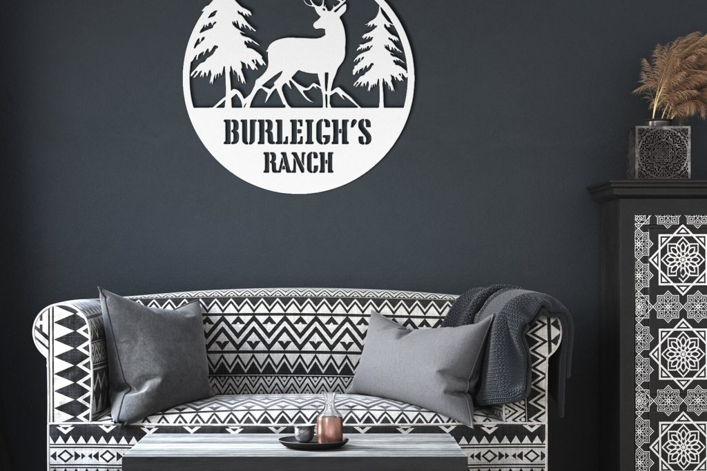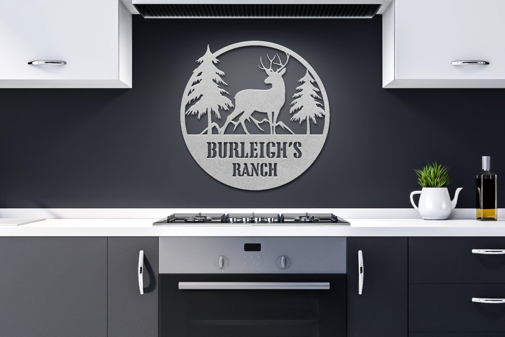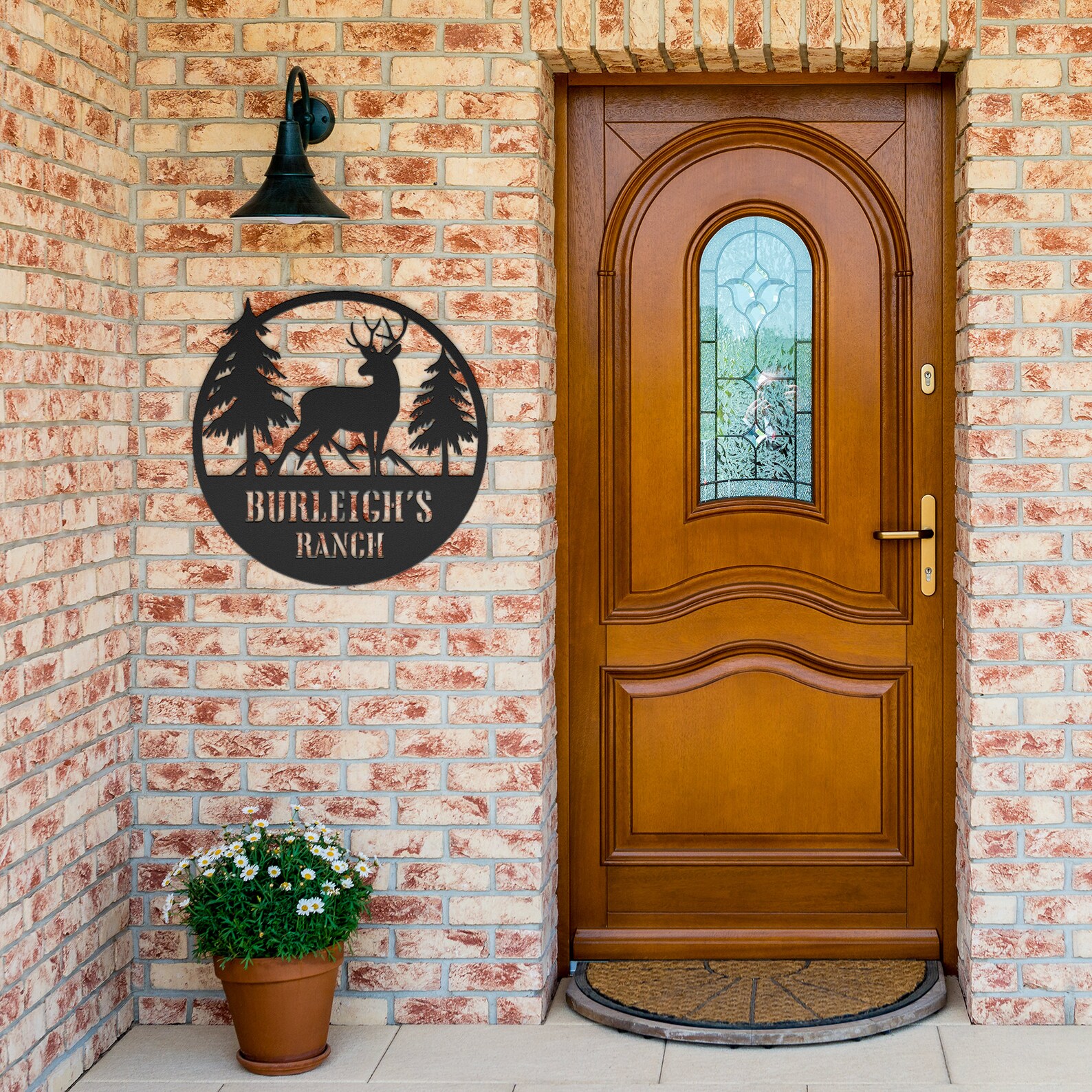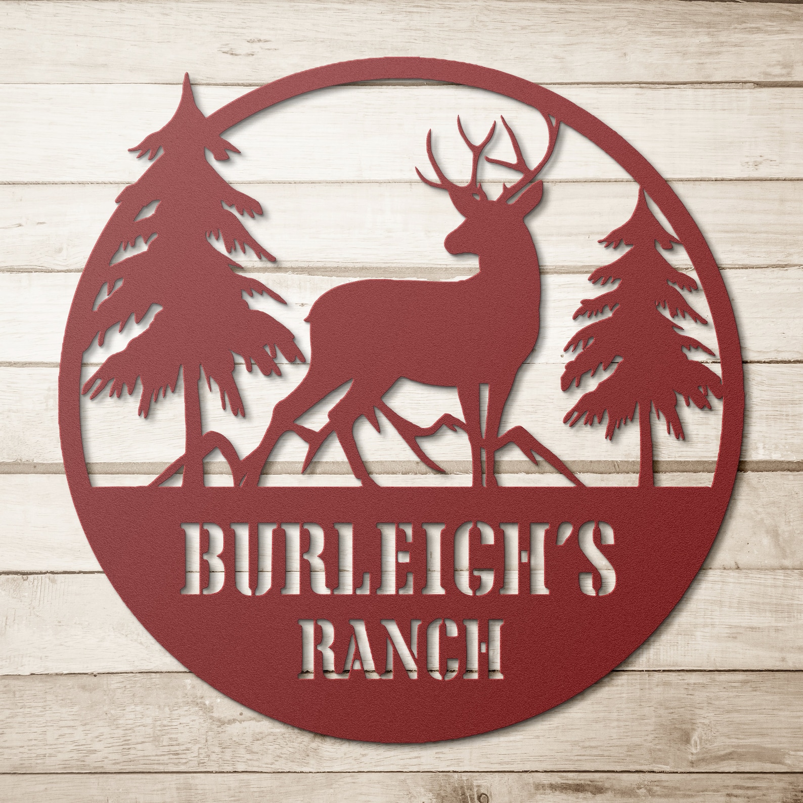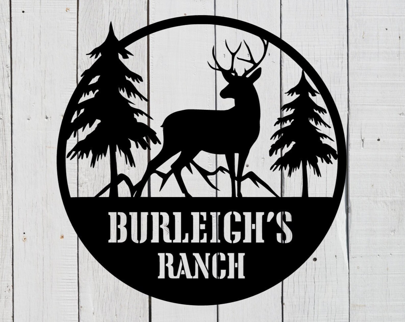 A custom metal hunting ranch sign is a personalized and striking piece of signage designed to capture the essence of the outdoors. Crafted from durable metal, this sign features a picturesque scene with intricately detailed trees, majestic mountains, and an elk, creating a rustic and natural ambiance. The addition of your last name adds a personalized touch, making it uniquely yours. This custom metal sign not only serves as a marker for your hunting ranch but also stands as a symbol of your connection to nature and the pursuit of outdoor adventures. It combines functionality with aesthetic appeal, making it an ideal addition to the entrance of your hunting retreat or cabin, welcoming visitors with a glimpse of the natural beauty and personalized charm that defines your hunting haven.