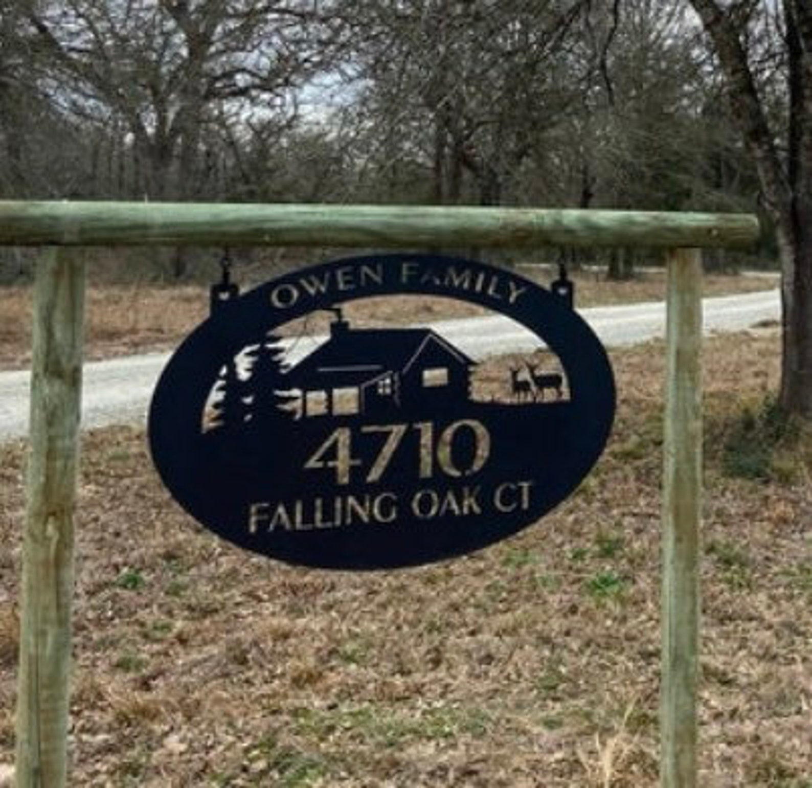 Metal laser cut sign personalized with your name finished in black powder coat ,measures 3 ft across by 25 tall or 46"x 30"
