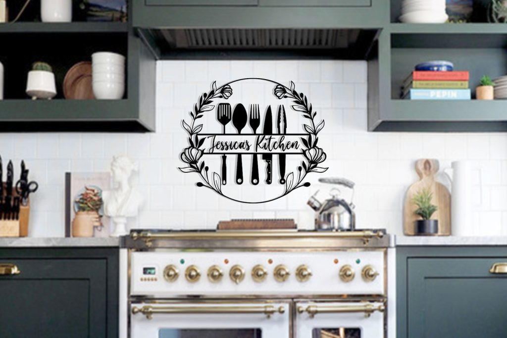 Personalize Mom9;s Kitchen Wall Art Decor, Metal Kitchen Monogram Sign, Gift for Mom, Custom Kitchen Plaque, Housewarming Kitchen Gift