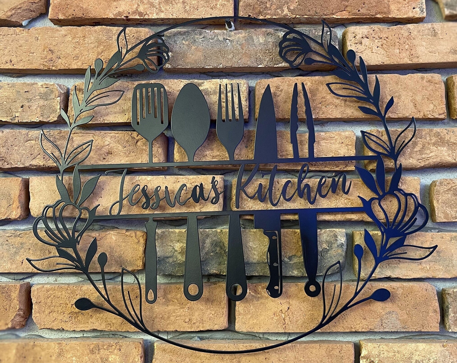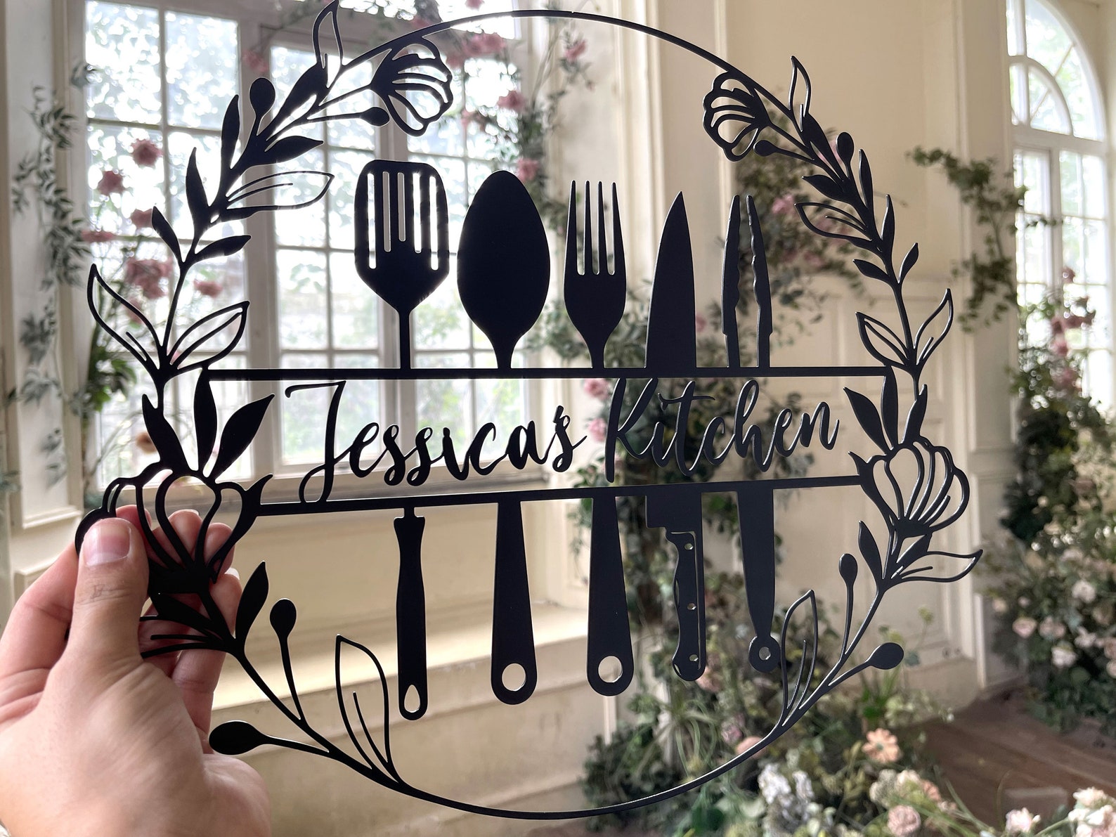 Introducing our newly remodeled rustic kitchen sign – a high-quality product that will add charm to your farmhouse or vintage kitchen. Made from lightweight metal with a black matte finish, this well-made sign is easy to hang. The ellent craftsmanship and attention to detail make this metal wall decor a must-have for any kitchen. It9;s the perfect housewarming gift or a gift for mom, especially if she loves cooking and spending time in the kitchen. Whether you have a small kitchen or an outdoor kitchen on your riverfront property, this kitchen sign is a great addition to your home decor. So, upgrade your backsplash with this good quality metal kitchen sign and experience our outstanding customer service today!