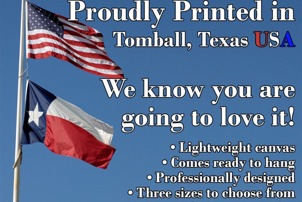 MADE IN AMERICA – All our canvas artwork is hand-stretched by our employees in Tomball, Texas. We take pride in doing the work here and doing it right.