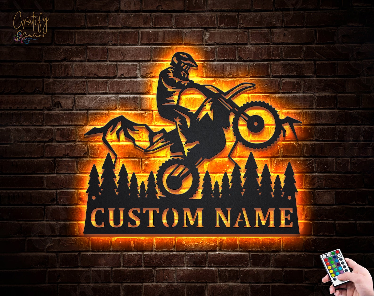 Personalized Motorcycle Garage Name Metal Sign – LED Light, Custom Biker Name Sign