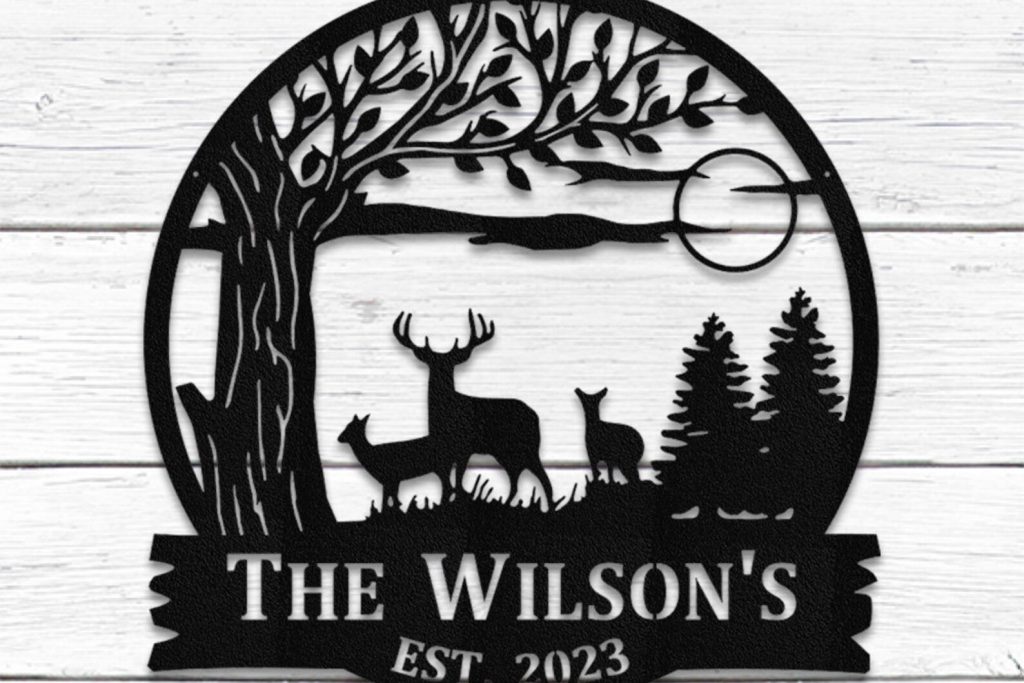 Be the first to review “Personalized Mountain Deer Metal Monogram Sign”
