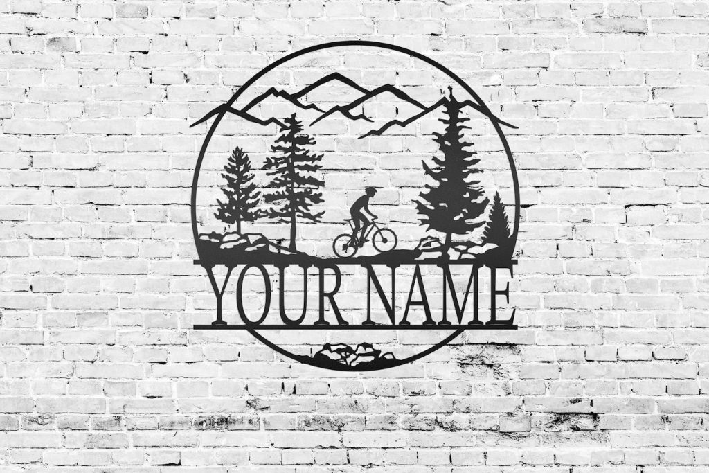 For the bike lover this personalized sign is the perfect piece to welcome people to your home. Made from 1/8" aluminum and finished in an outdoor rated black textured powder coat this piece will stand up to the elements and look amazing for years to come.