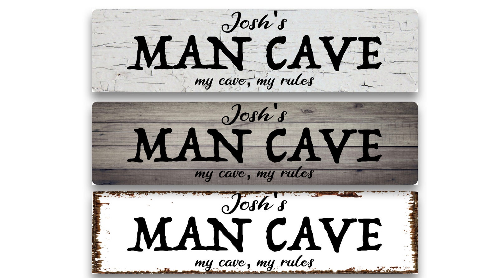 Design: Personalized Name MAN CAVE with wood style backgrounds choose from – – Metal Sign Door Plaque – (Note not actual wood or rust so smooth and safe to the touch)