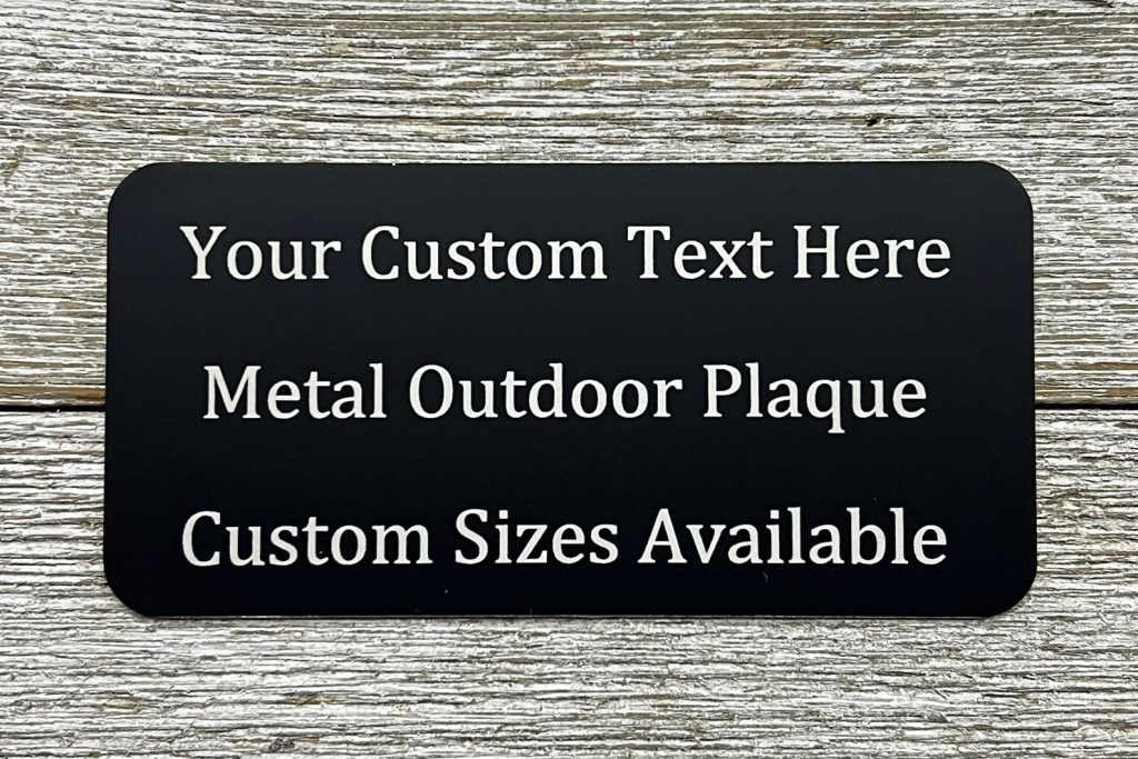 Engraved black metal plate. Engraved with your custom text. Please select size at checkout.