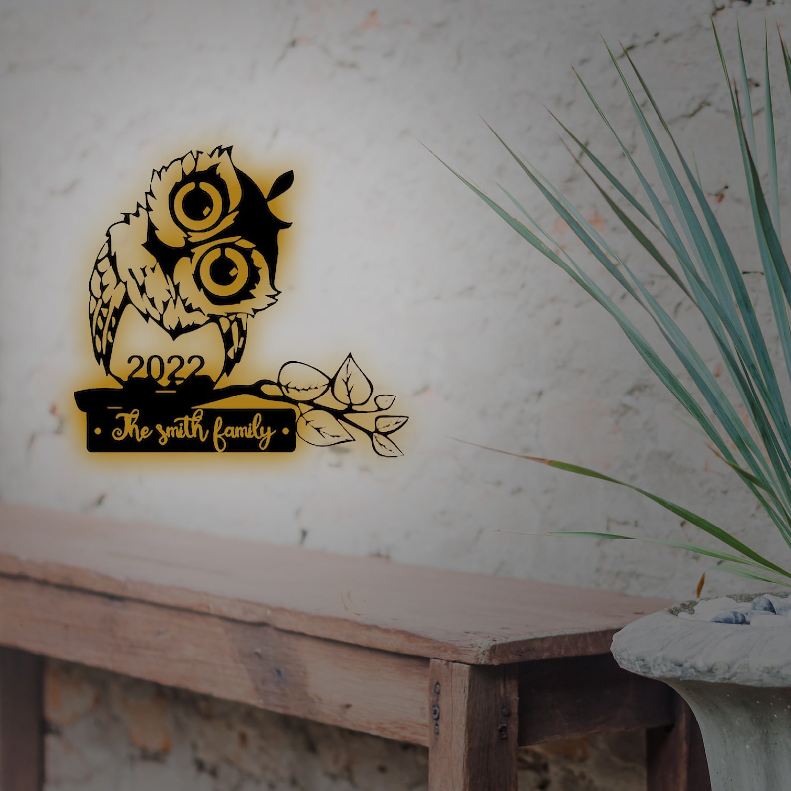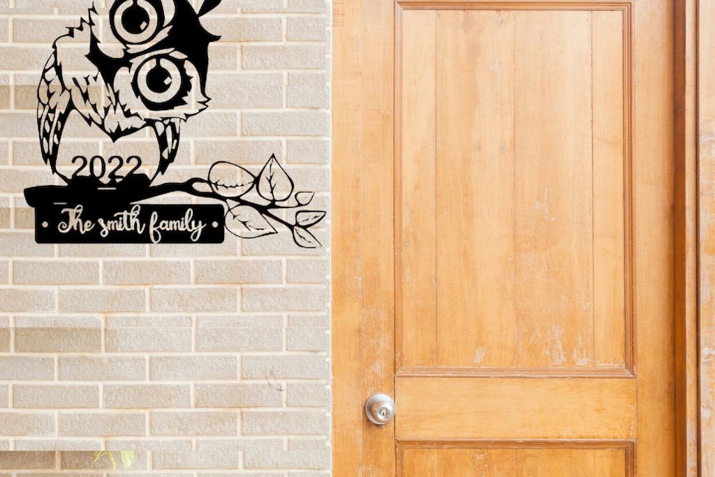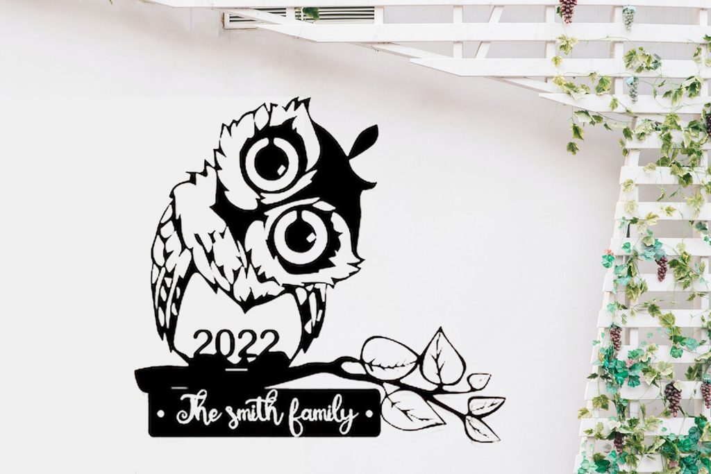 Personalized Owl Metal Sign with Family Name