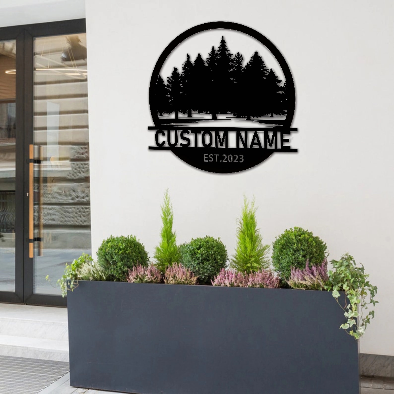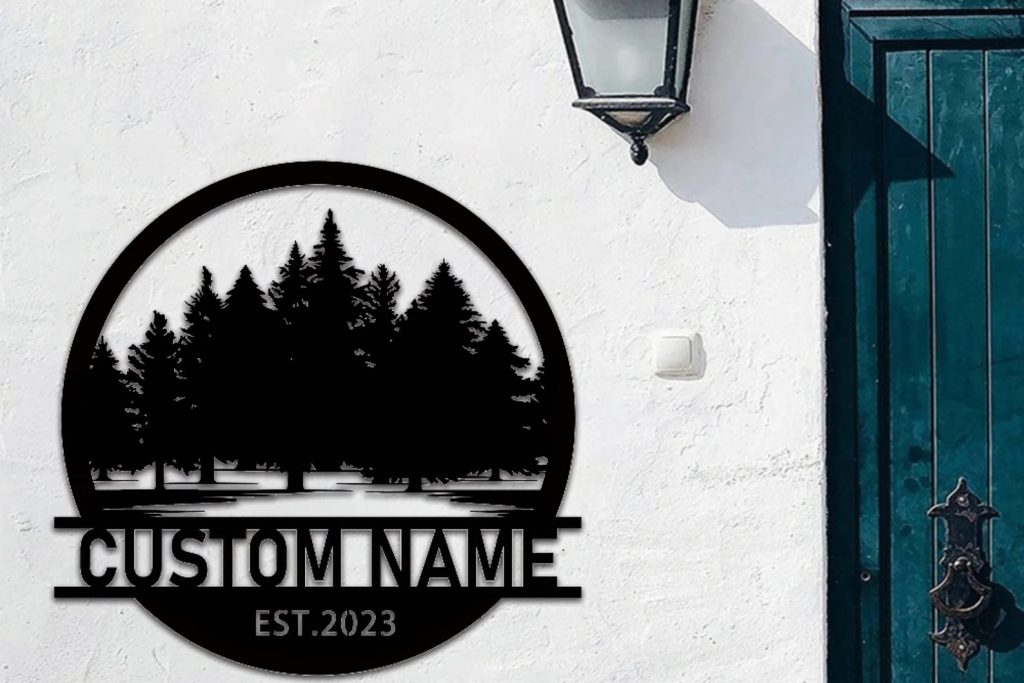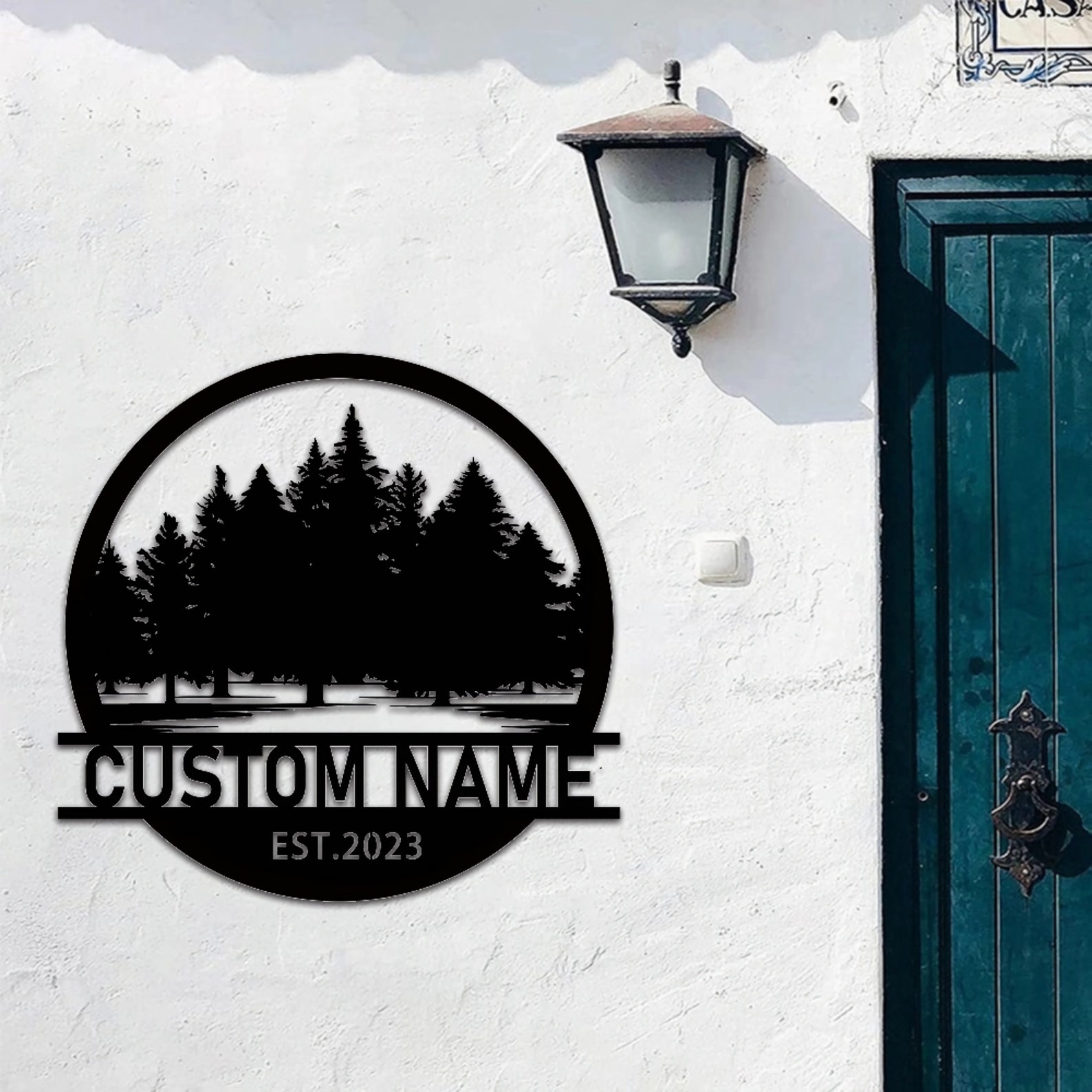 Personalized Name Metal Sign- Custom Metal Address House Number Sign-Pine Tree Metal Wall Art-Front Door Sign Garage Sign -Housewarming Gift