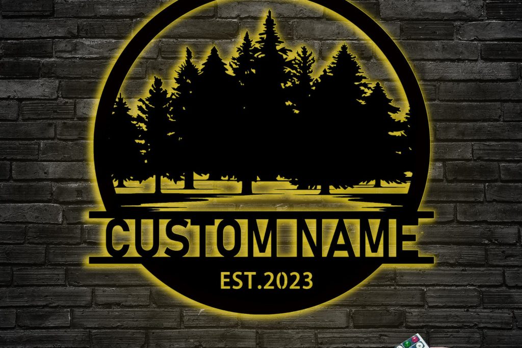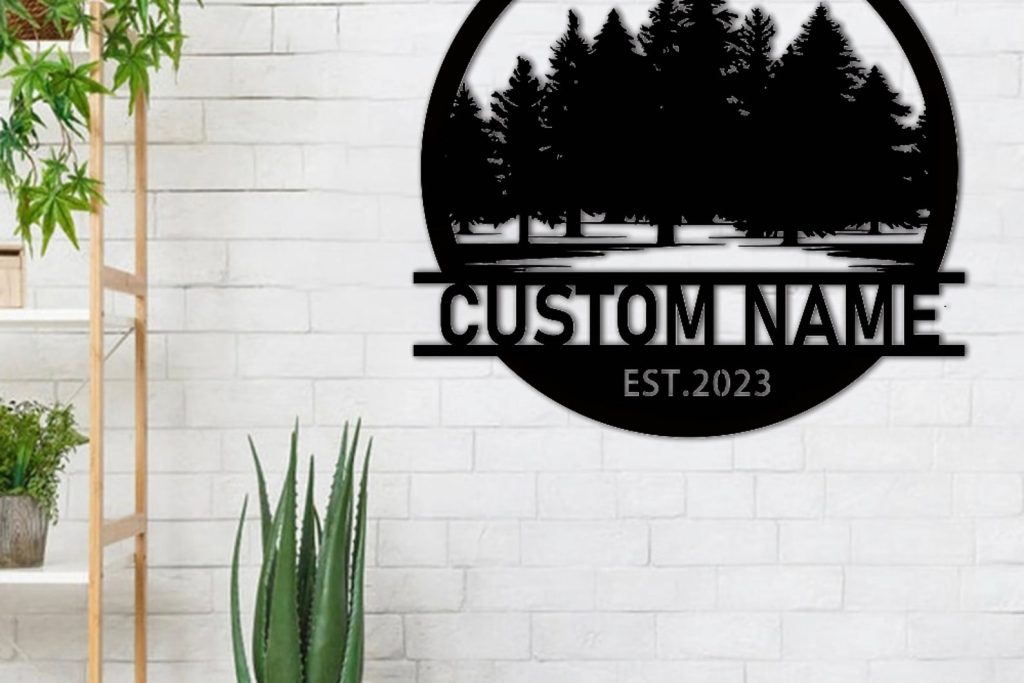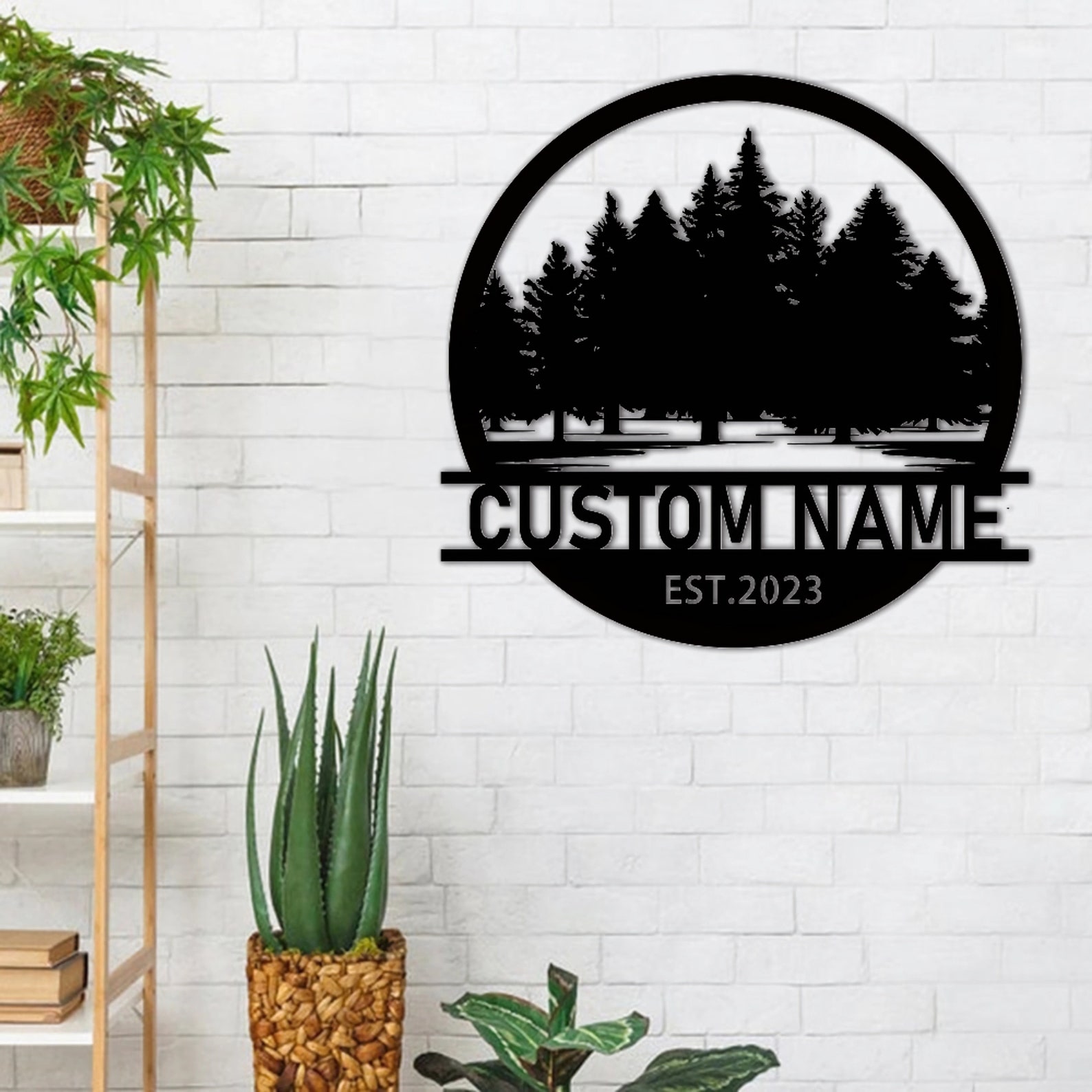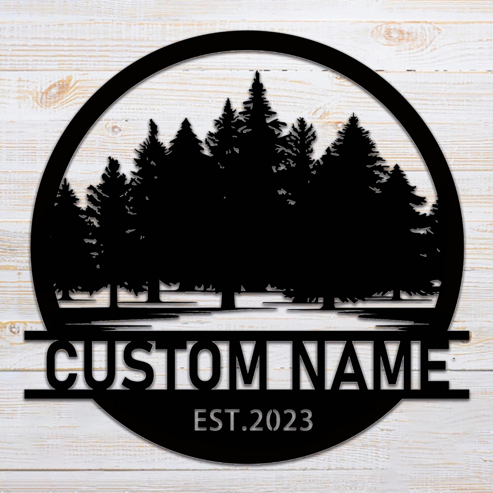 Personalized Name Metal Sign- Custom Metal Address House Number Sign-Pine Tree Metal Wall Art-Front Door Sign Garage Sign -Housewarming Gift