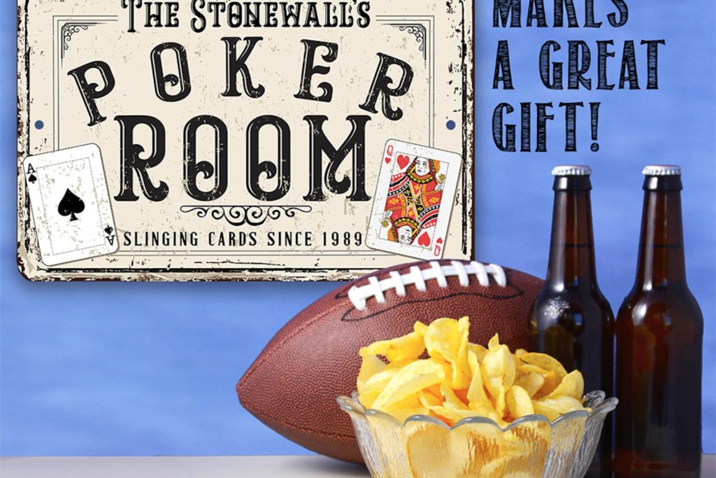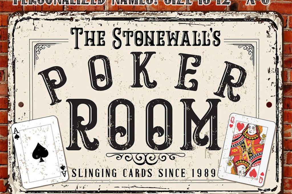 Personalized Metal Sign – Poker Room – Tin -8" or 12" Use Indoor/Outdoor – Great Gift & Decor