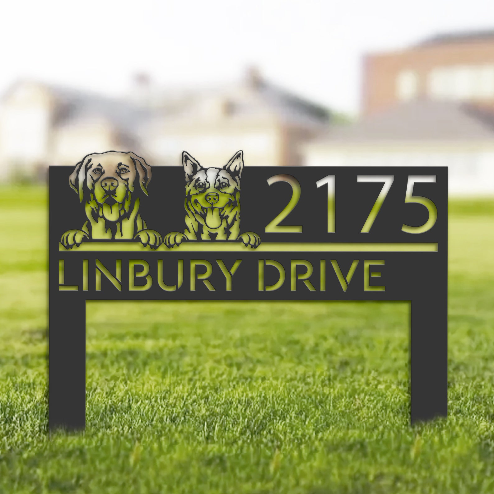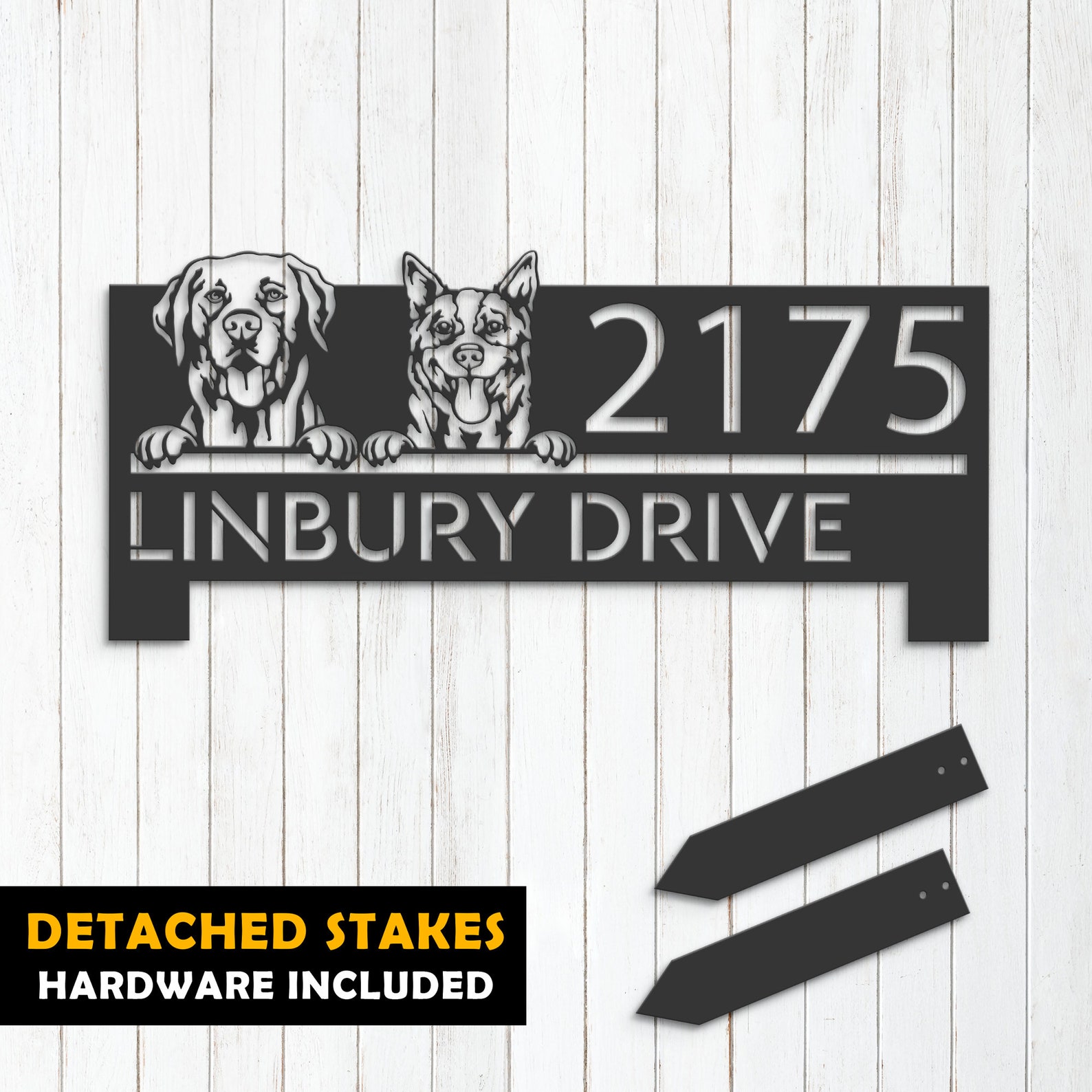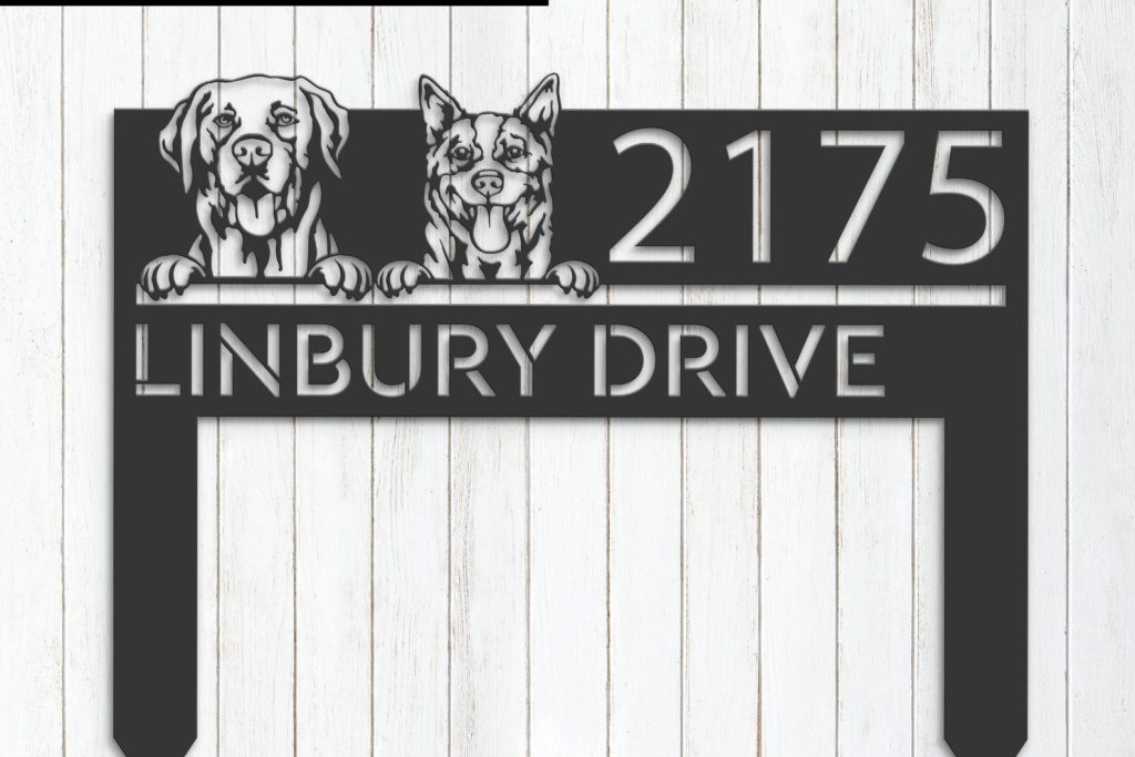 Personalized Red Heeler & Labrador Metal Address Sign – Puppy