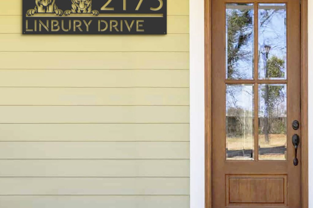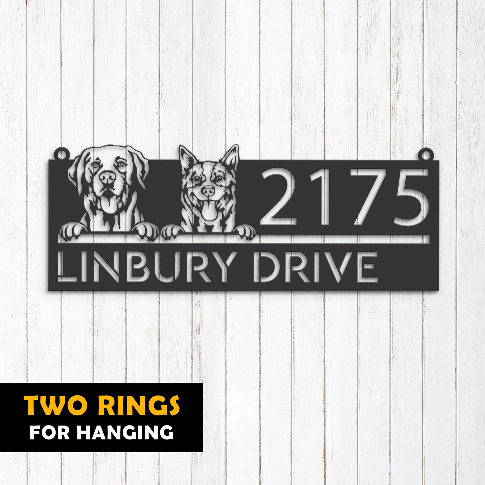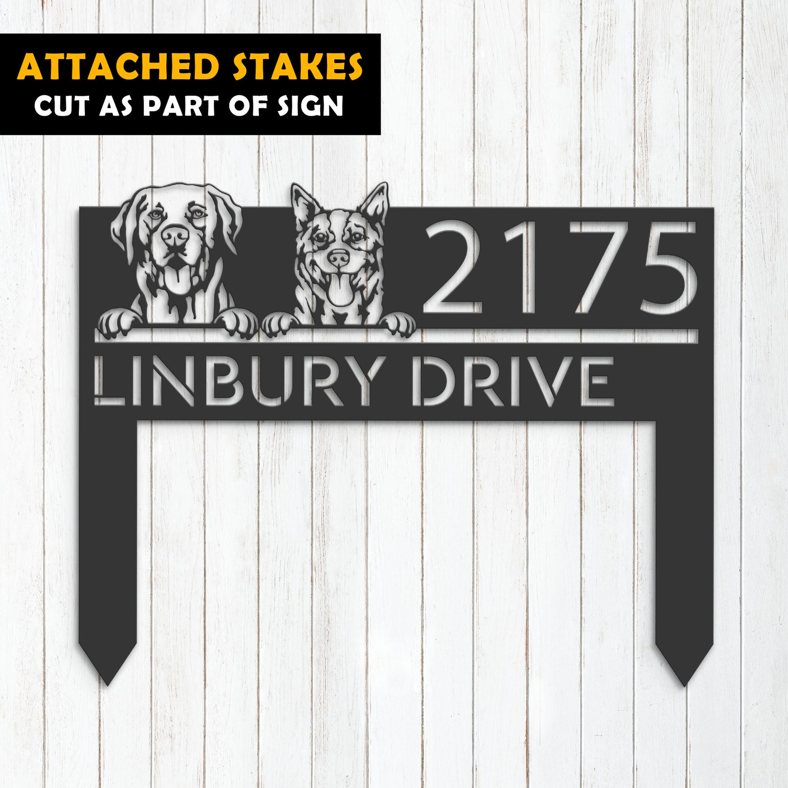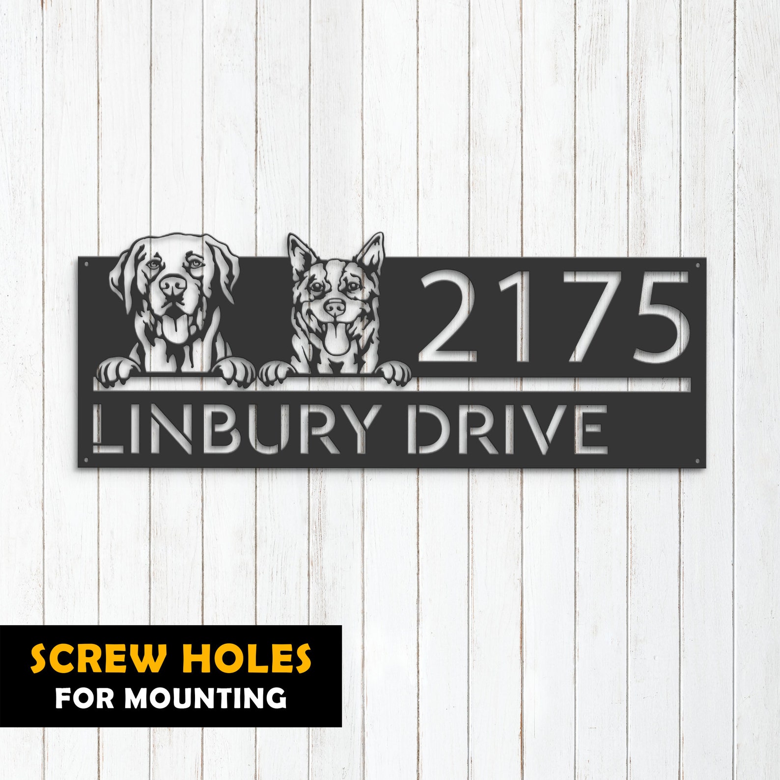 Personalized Red Heeler & Labrador Metal Address Sign – Puppy