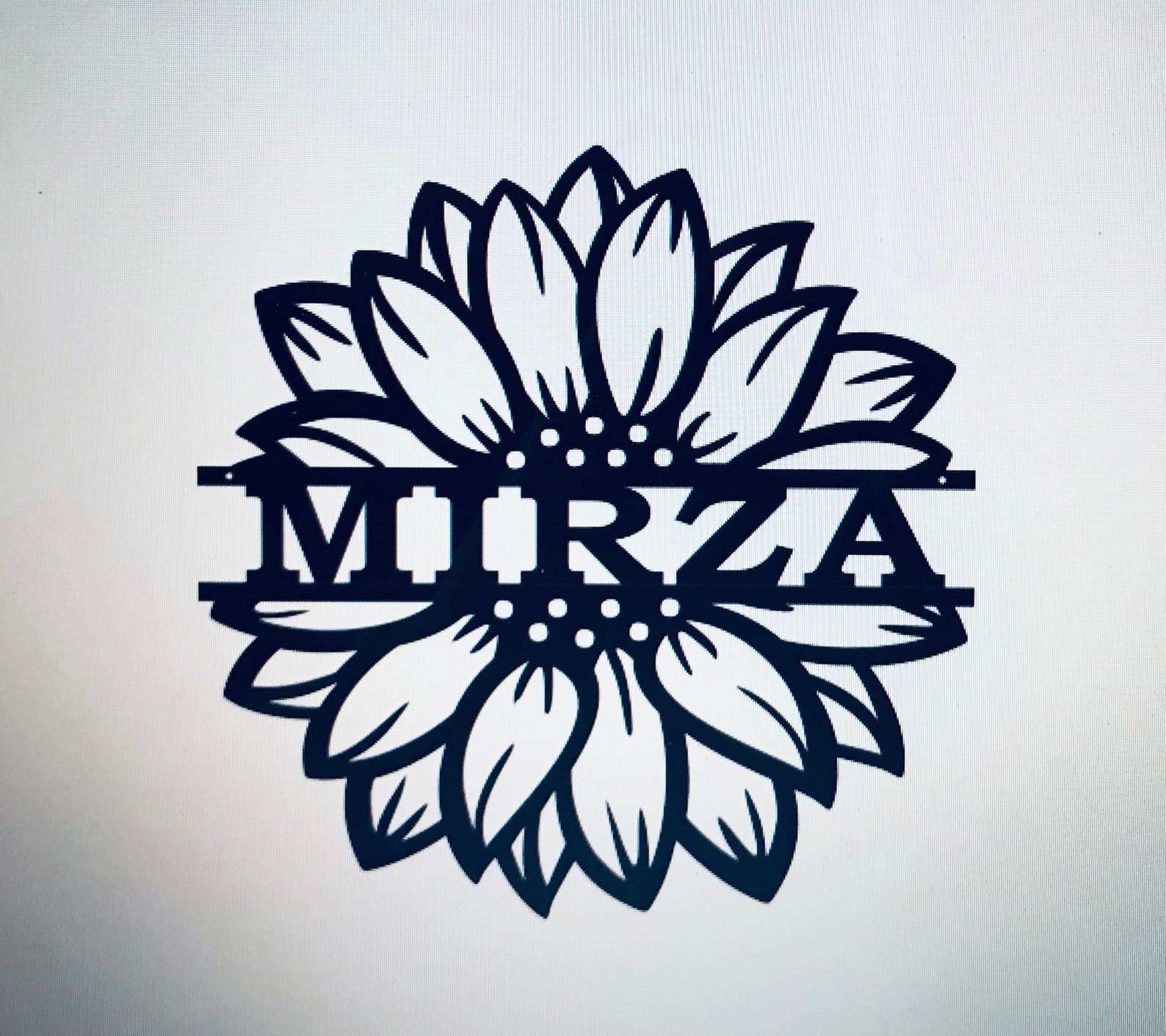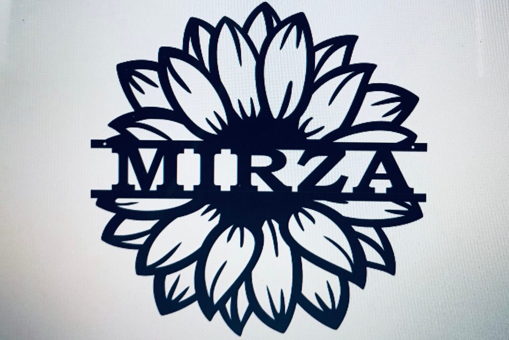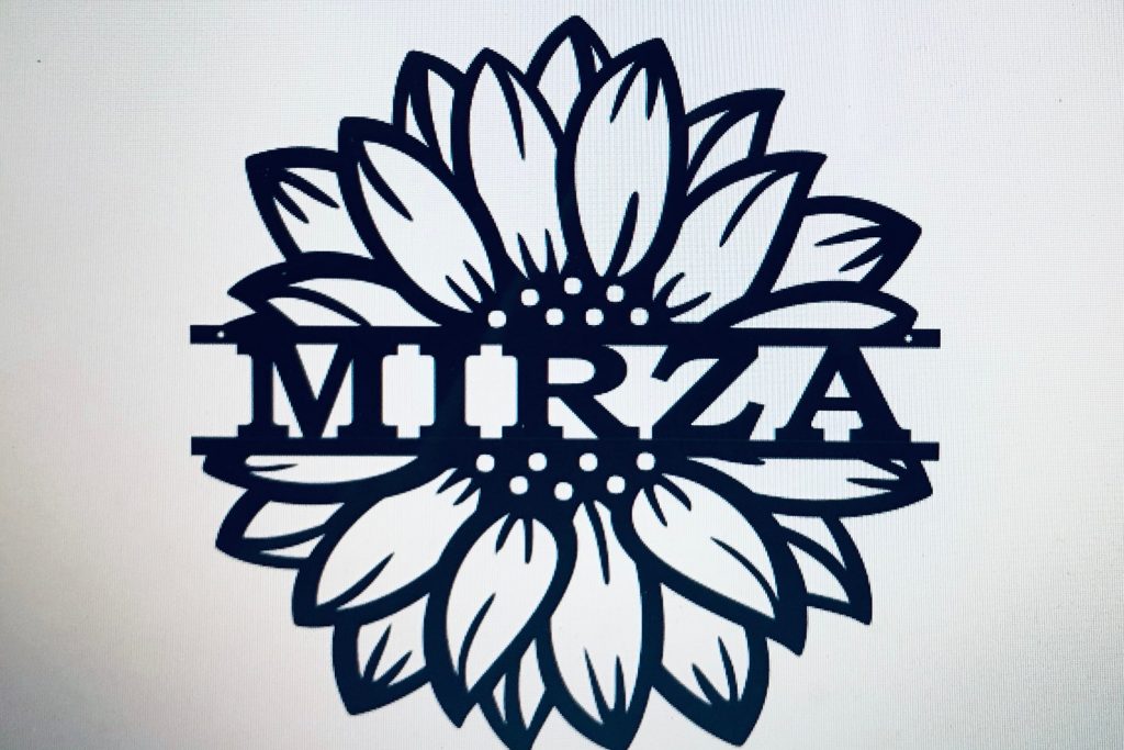 Sunflower Monogram personalized custom sign for inside or outside use. Great for inside or outside the home, cabin, or campground . 16 gauge steel, powder coated black. Signs are individually made, not mass produced. Can be made with or without the holes/dots in the middle of the flower. Often made with family name, first name, or a house number. Popular as a gift.