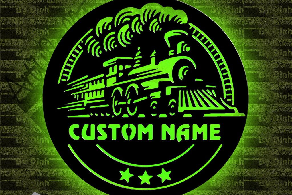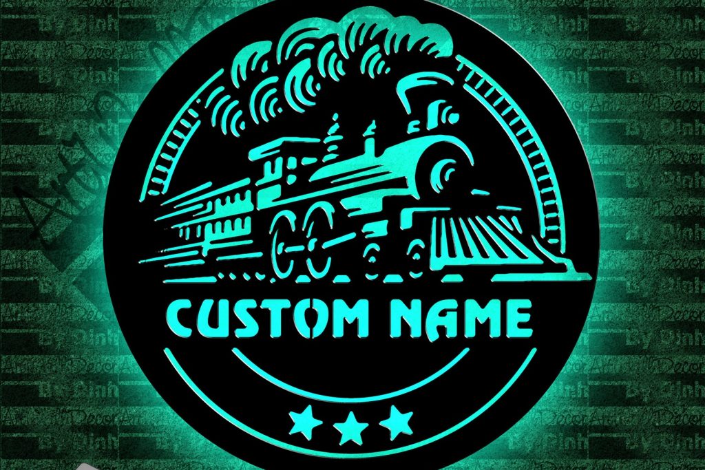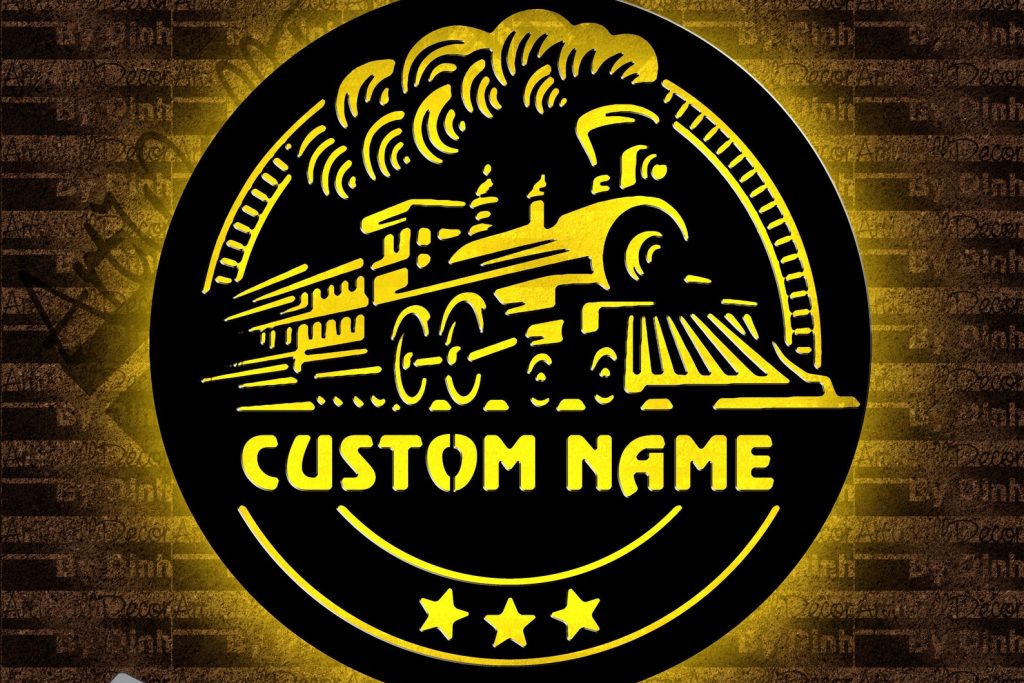 Personalized Train Metal Sign – LED Lighted Art