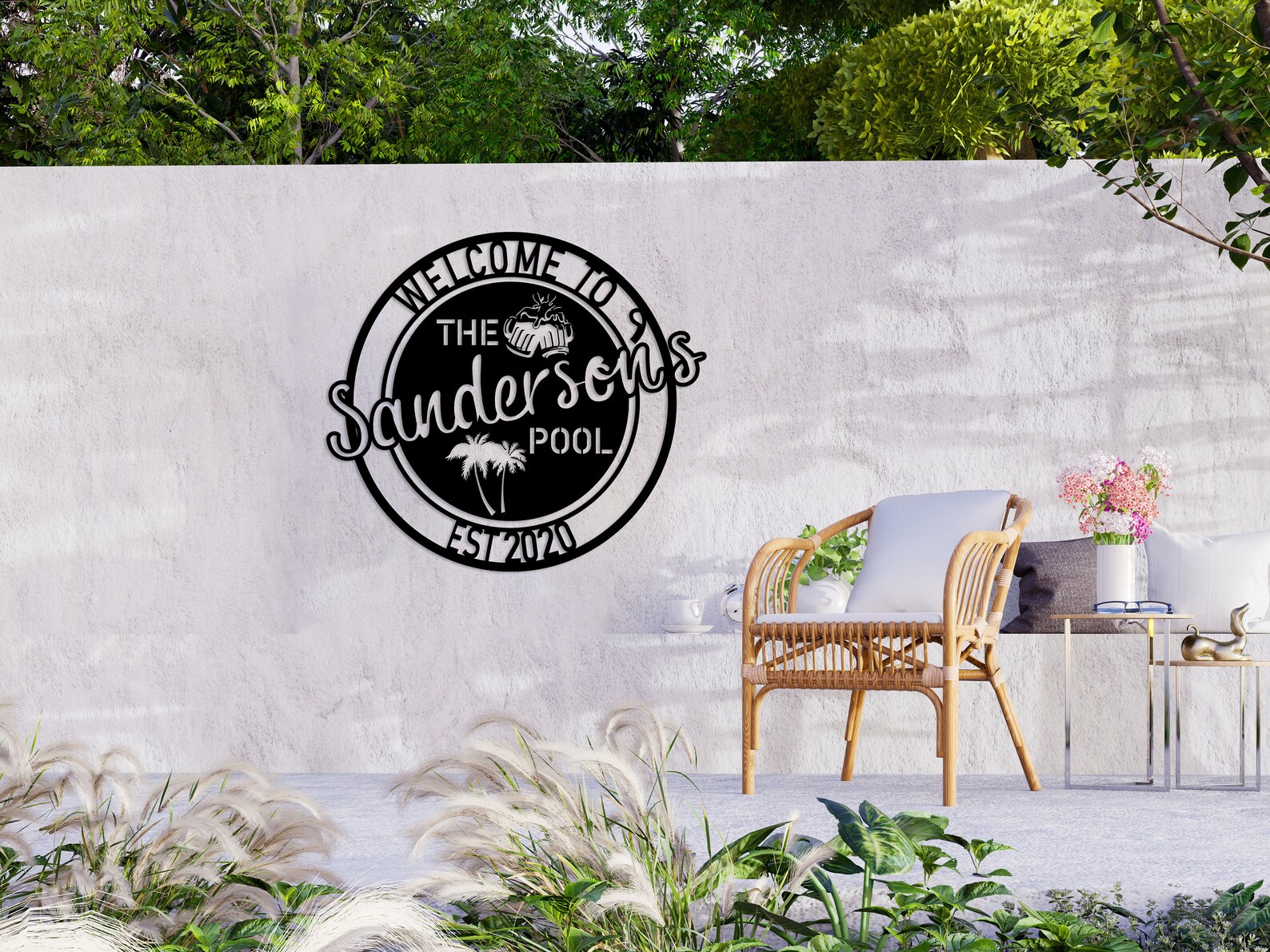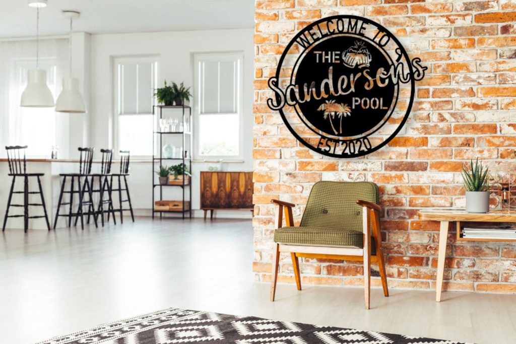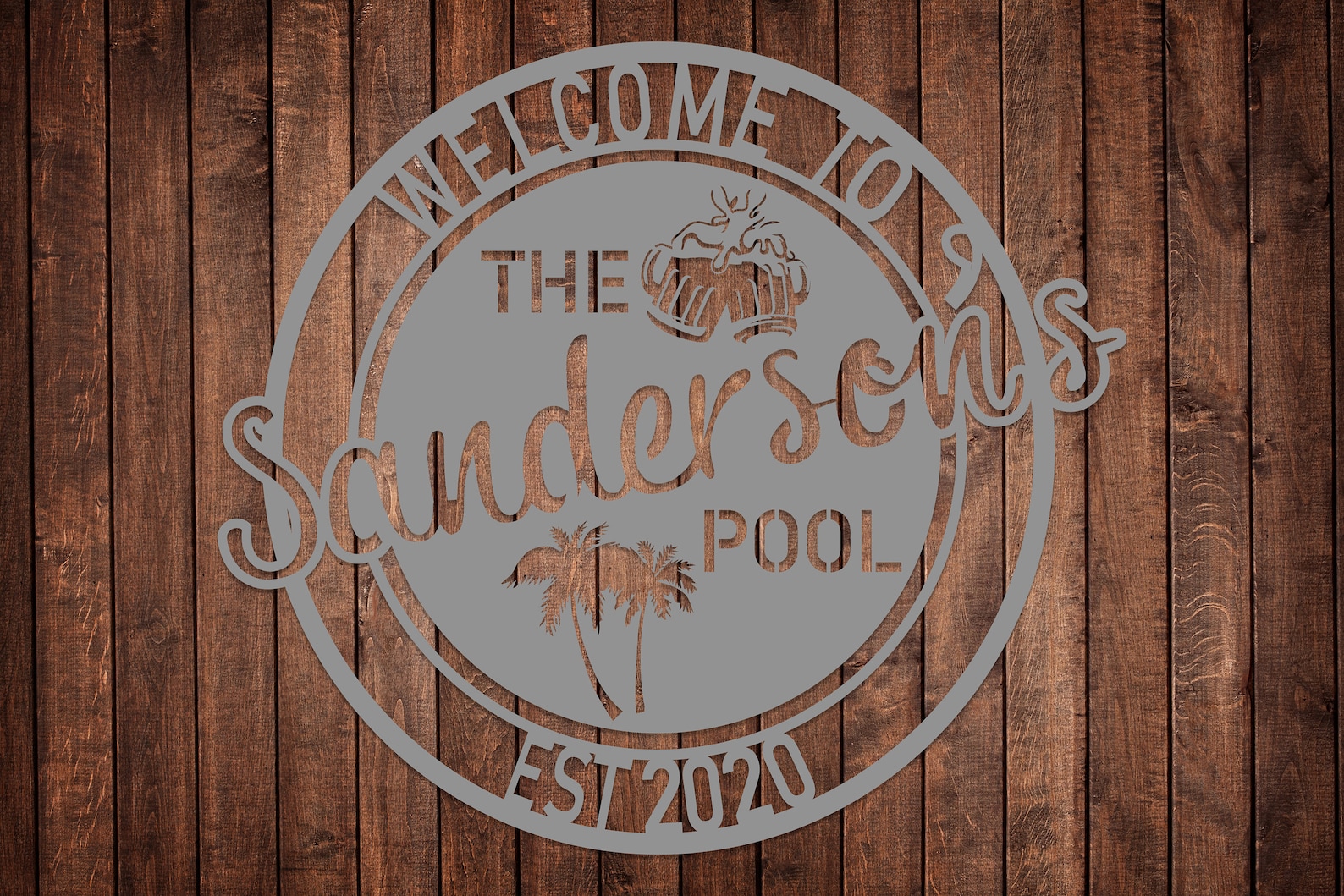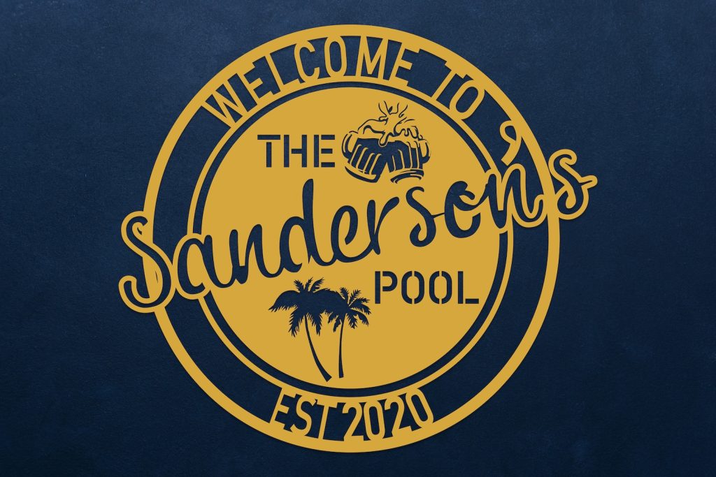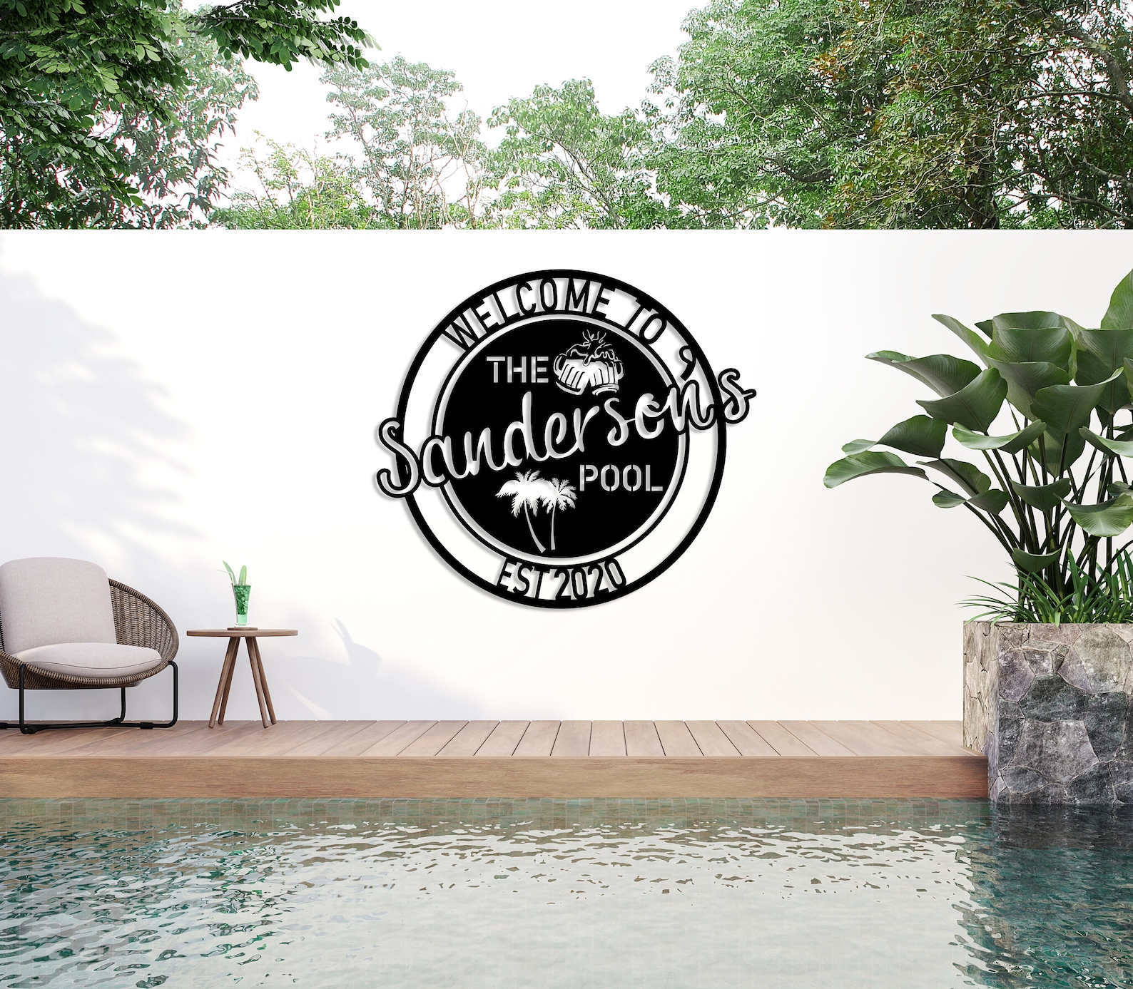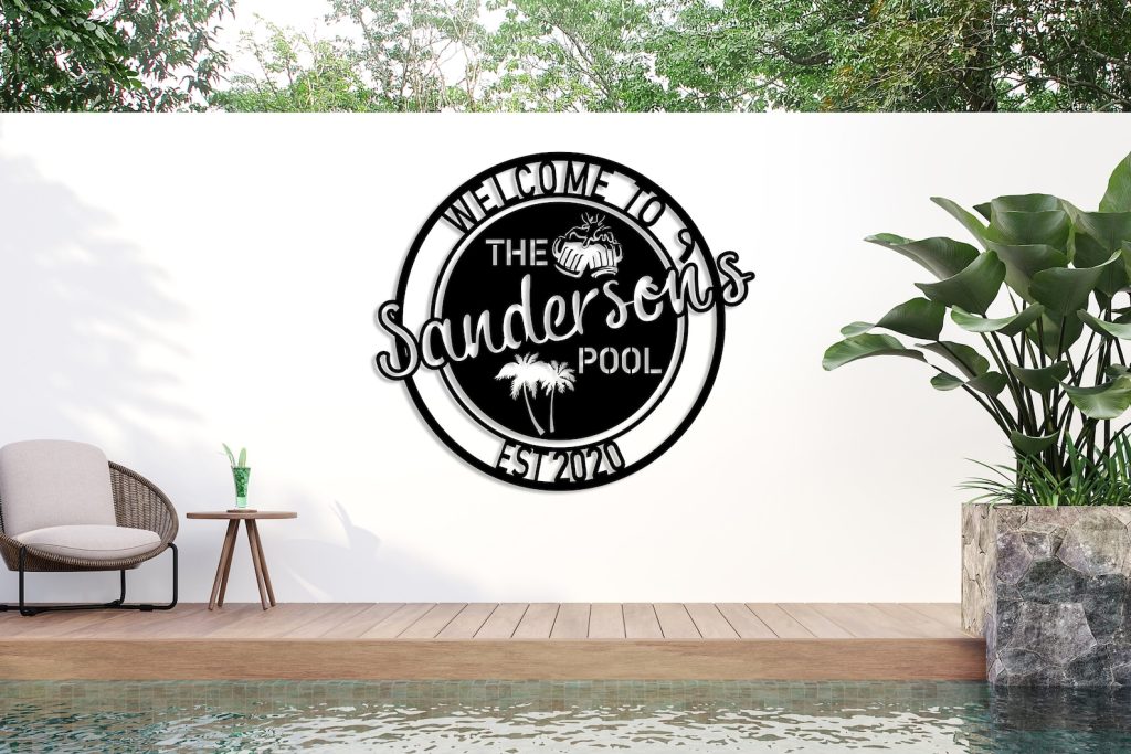 Personalized Metal Poolside Sign, Custom Tropical Pool Sign, Patio Decor, Pool Bar Sign, Backyard Sign, Custom Welcome Sign, Tiki Bar Art