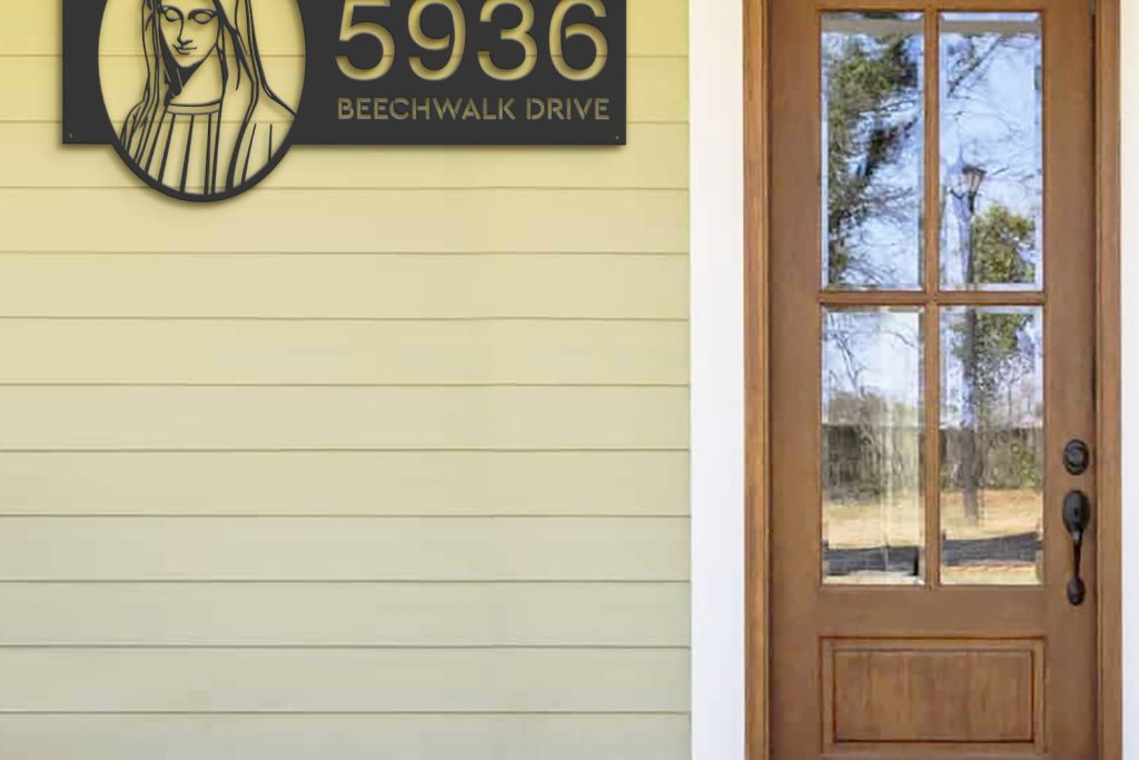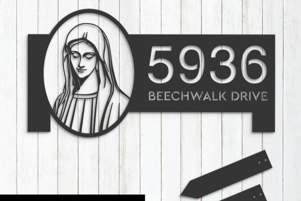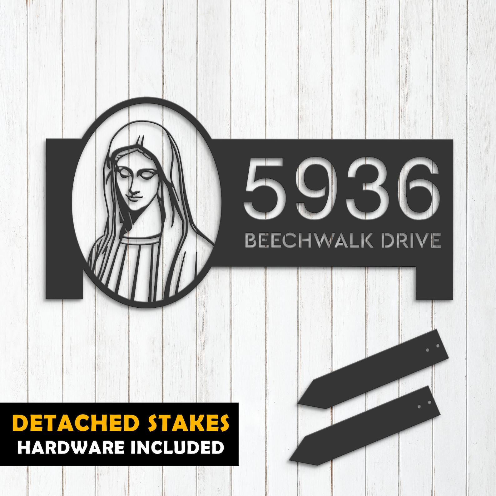 Be the first to review “Personalized Virgin Mary Christian Metal Address Sign”