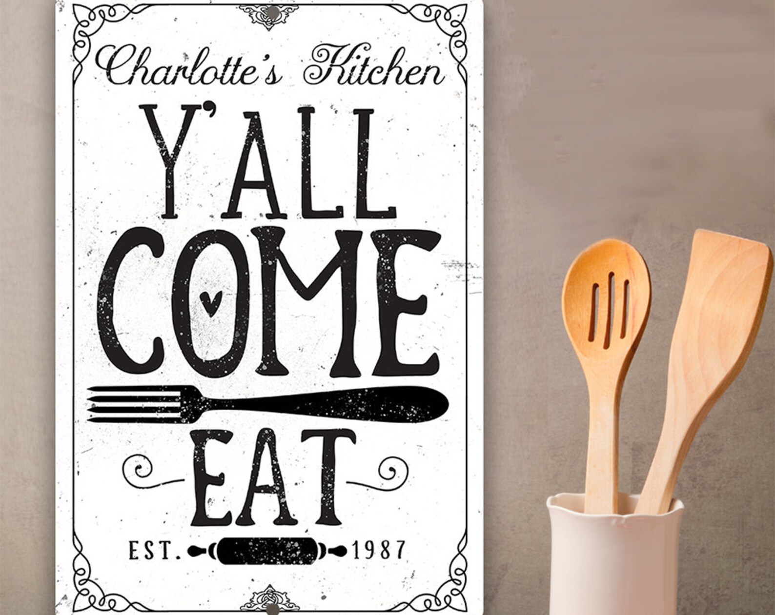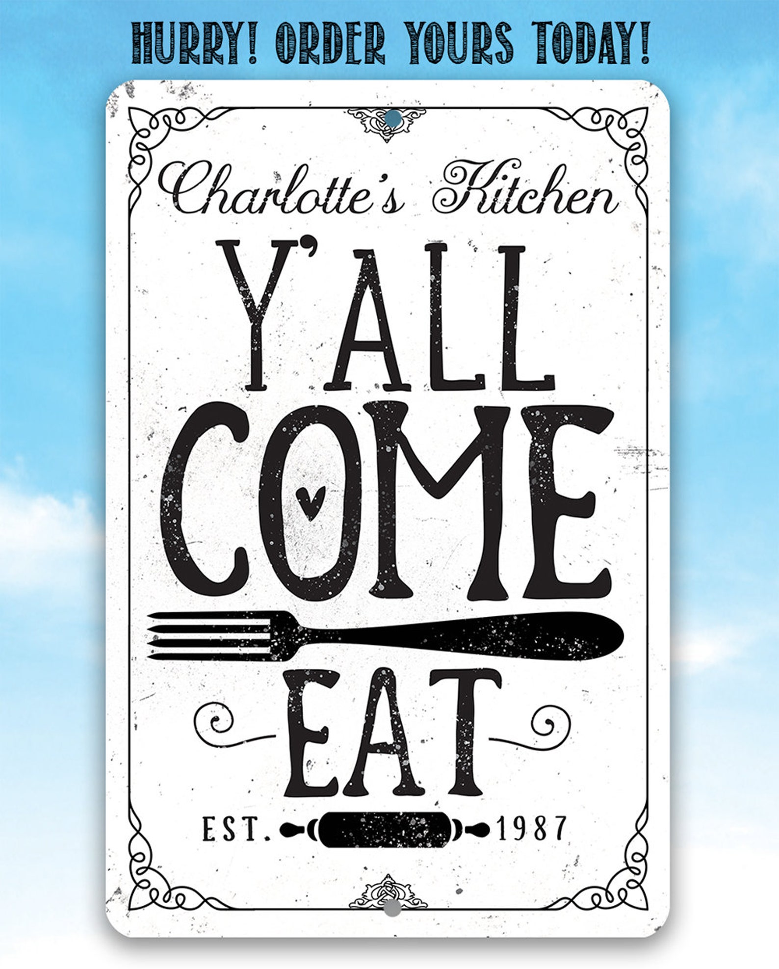 Personalized Y’all Come Eat Kitchen Metal Sign