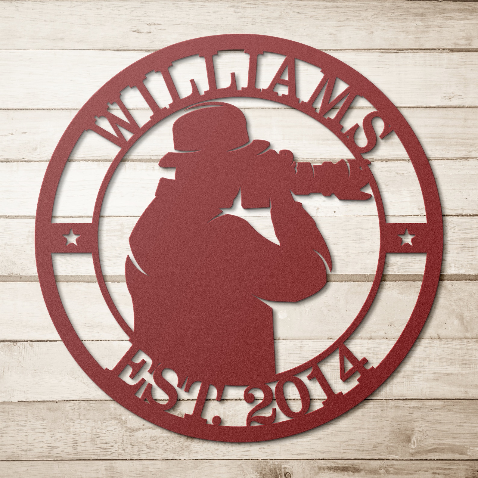 Upgrade your living space with our meticulously crafted metal sign, designed to bring a touch of elegance both indoors and out. Crafted from durable 18 gauge steel, each sign is powder-coated in your choice from 5 stunning colors: Black, Red, White, Copper, or Silver. With 6 size options ranging from 12" to 36", you can select the perfect fit based on the sign9;s maximum height or width, relative to its design orientation. Built to endure, our signs resist the elements, ensuring lasting beauty and charm for years to come. Orders will be dispatched from our production facility in Sioux Falls, South Dakota. During peak demand times, such as Christmas, Fathers Day, Mothers Day we may ship orders from Turkey to ensure timely delivery.