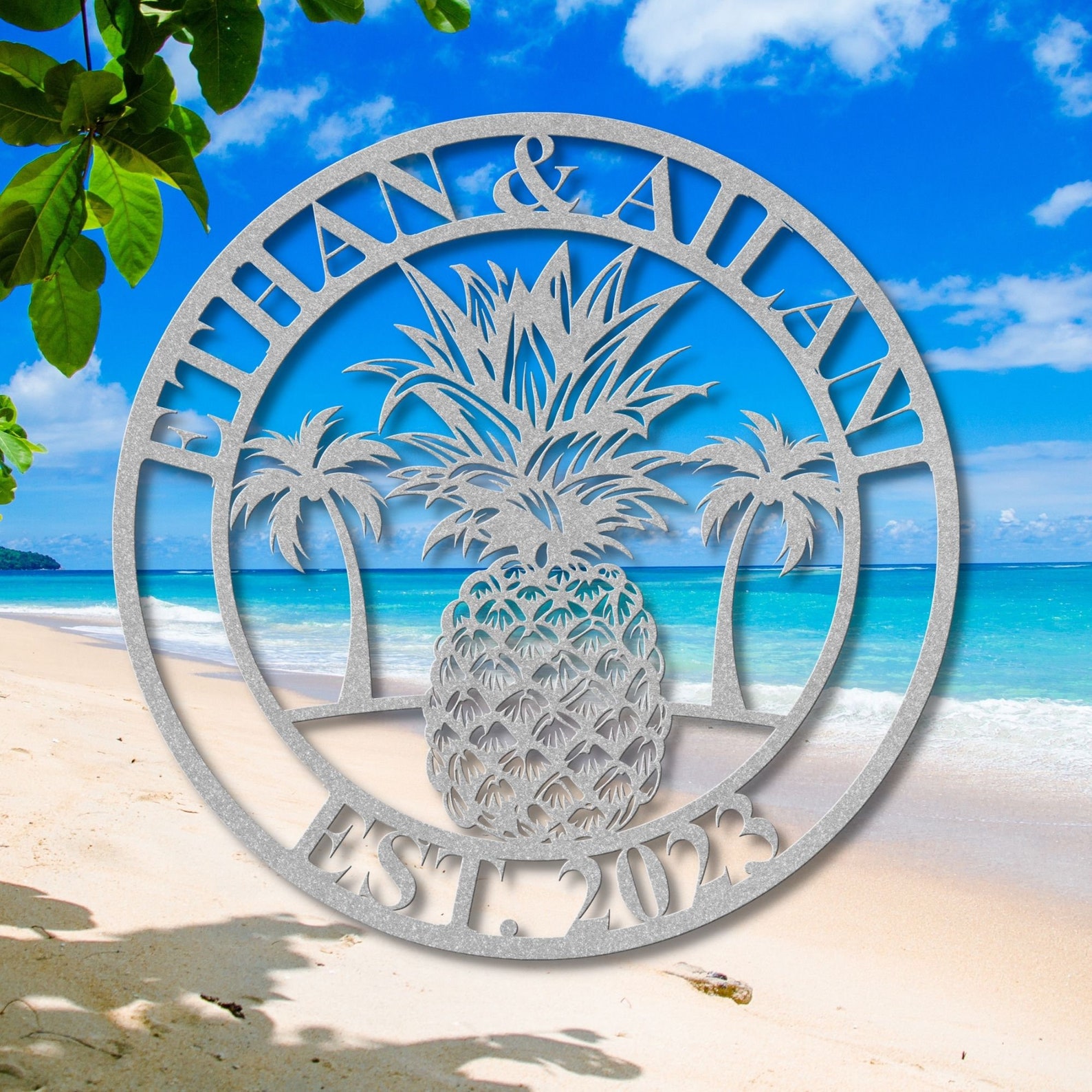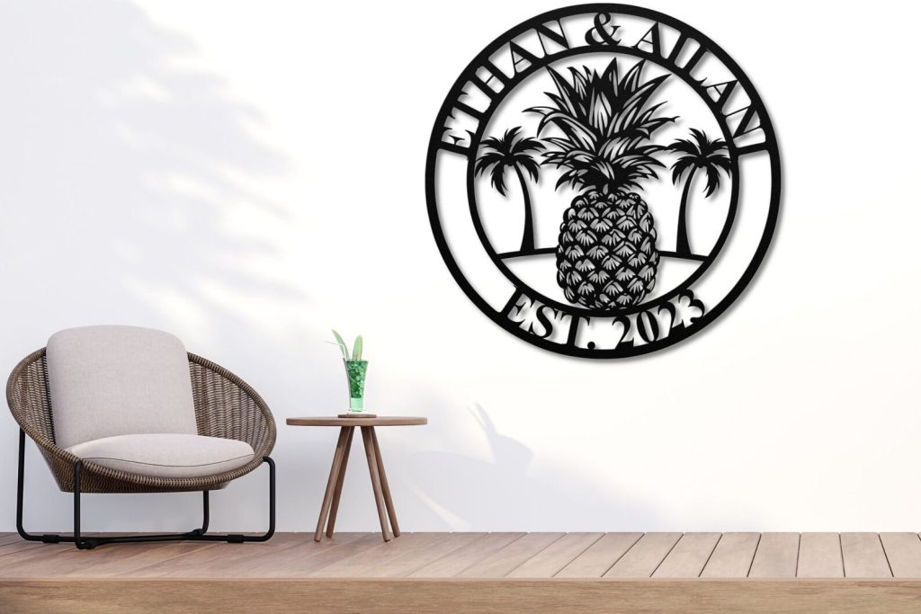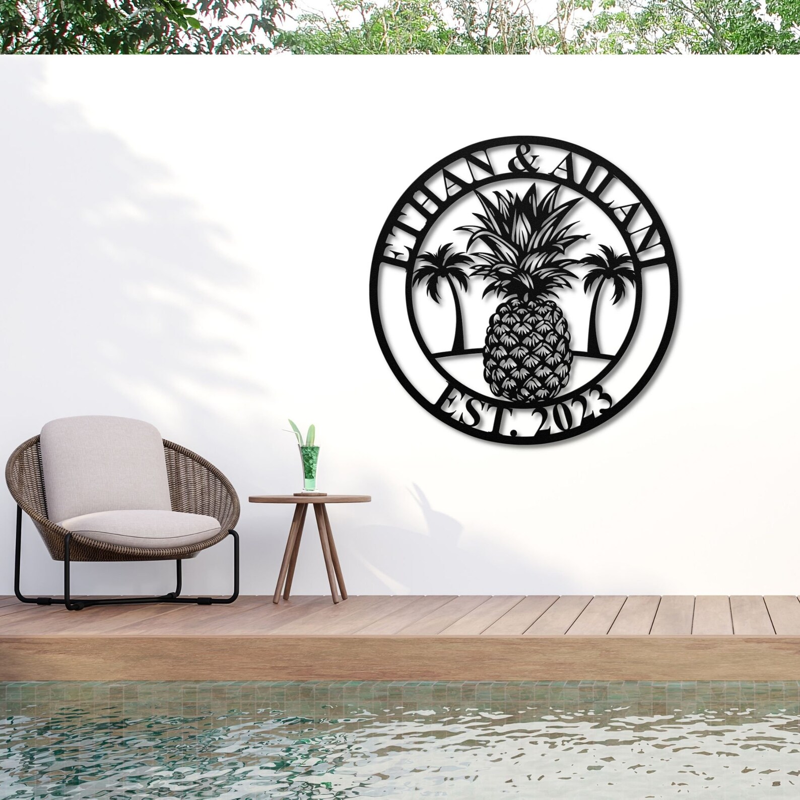 This metal wall art is perfect for anyone seeking to infuse their living spaces with the allure of a tropical getaway. Whether you9;re decorating your beach house, creating a coastal-themed living room, or simply yearning to add an exotic touch to your home, our Pineapple Palm Trees Metal Wall Art is the perfect choice