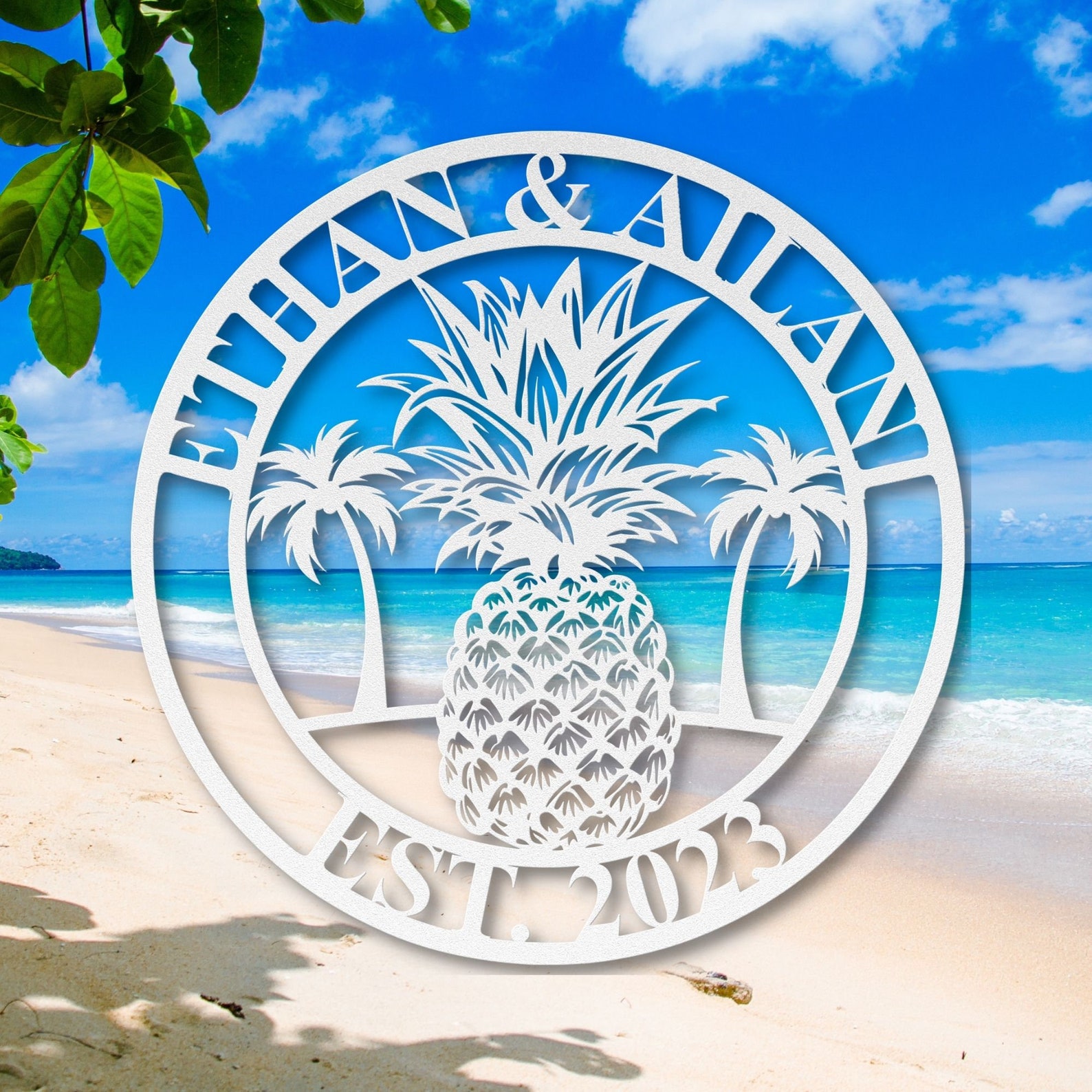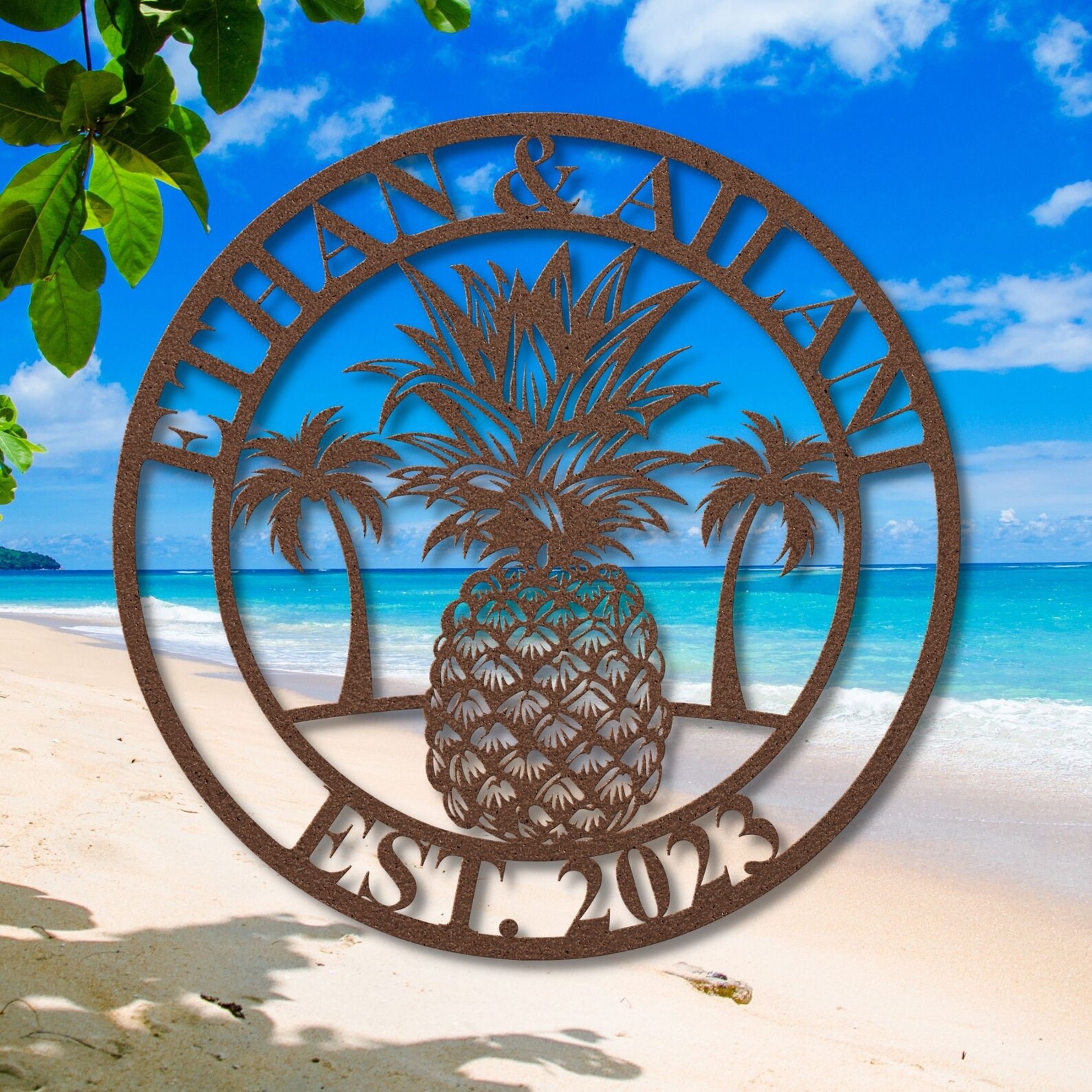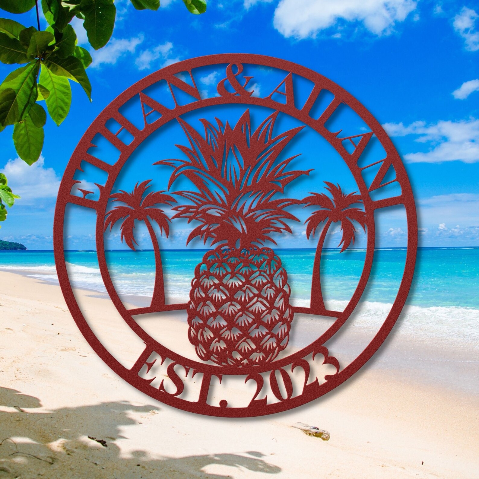 This metal wall art is perfect for anyone seeking to infuse their living spaces with the allure of a tropical getaway. Whether you9;re decorating your beach house, creating a coastal-themed living room, or simply yearning to add an exotic touch to your home, our Pineapple Palm Trees Metal Wall Art is the perfect choice
