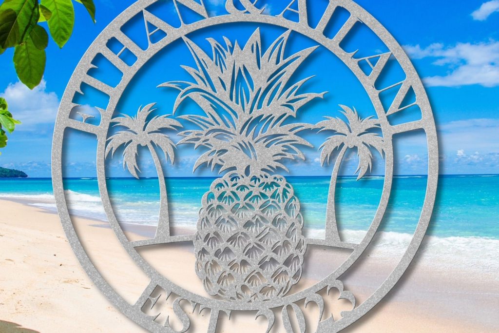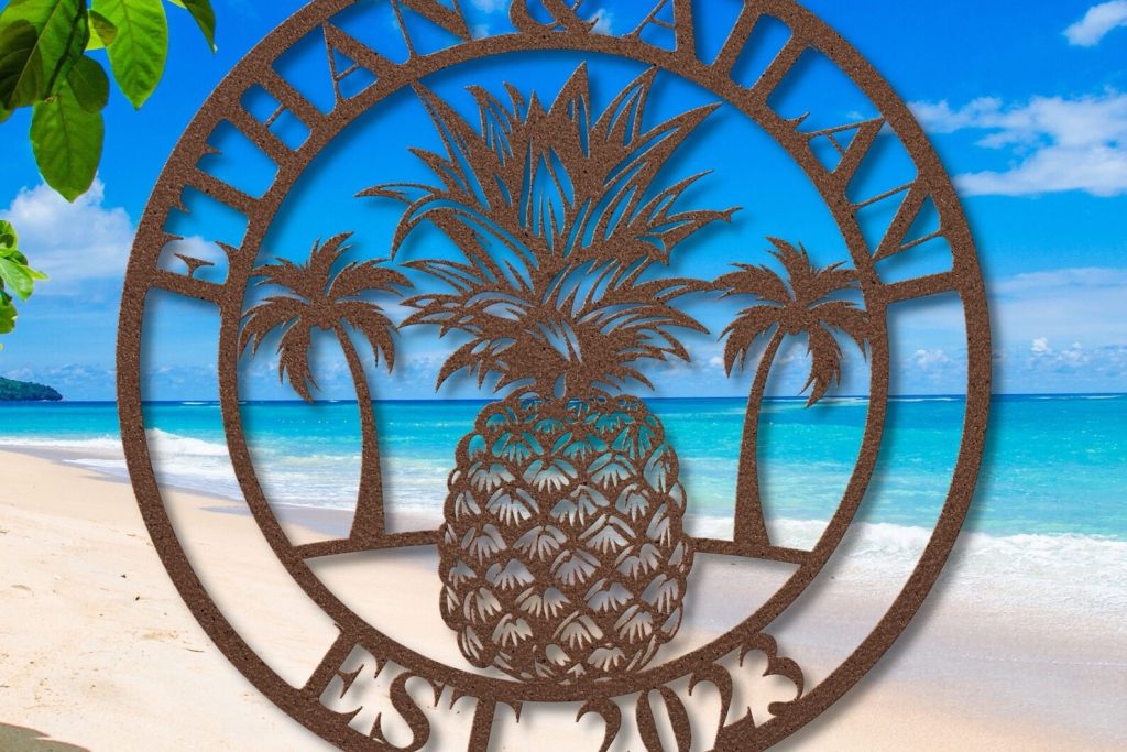 Transform your home into a tropical paradise with our Pineapple Palm Trees Metal Wall Art. This exquisite piece captures the beauty of swaying palm trees and delightful pineapples, making it perfect for creating an Island Vibes Relaxing Retreat or coastal-themed space.