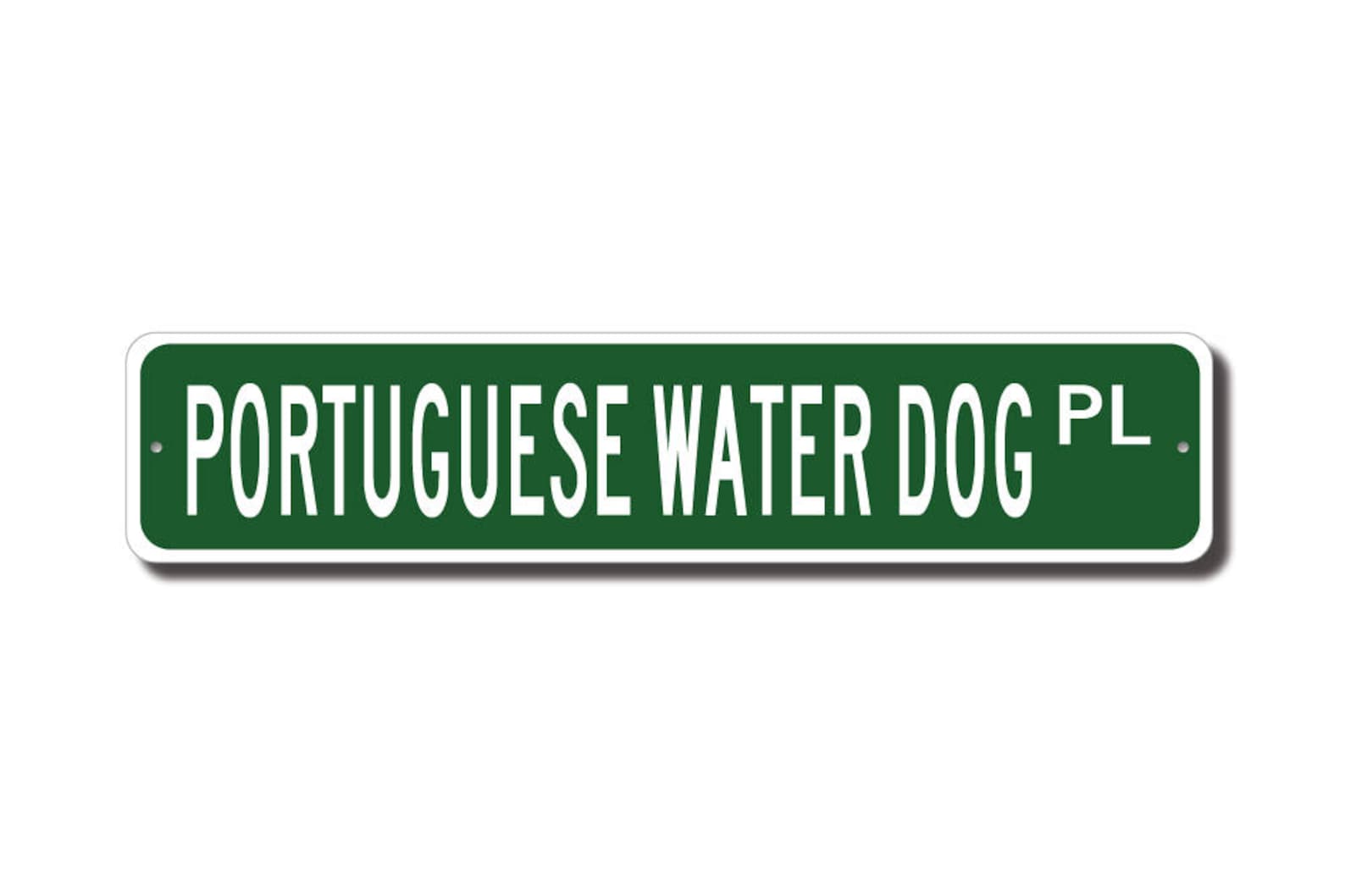 Portuguese Water Dog lovers check out this awesome street sign! This will make the perfect piece for any Portuguese Water Dog lover or Portuguese Water Dog cave. Made of premium aluminum it will stand the test of time. This sign will look great in any room, garage, barn or office! Get this sign for your favorite friend that loves a Portuguese Water Dog !