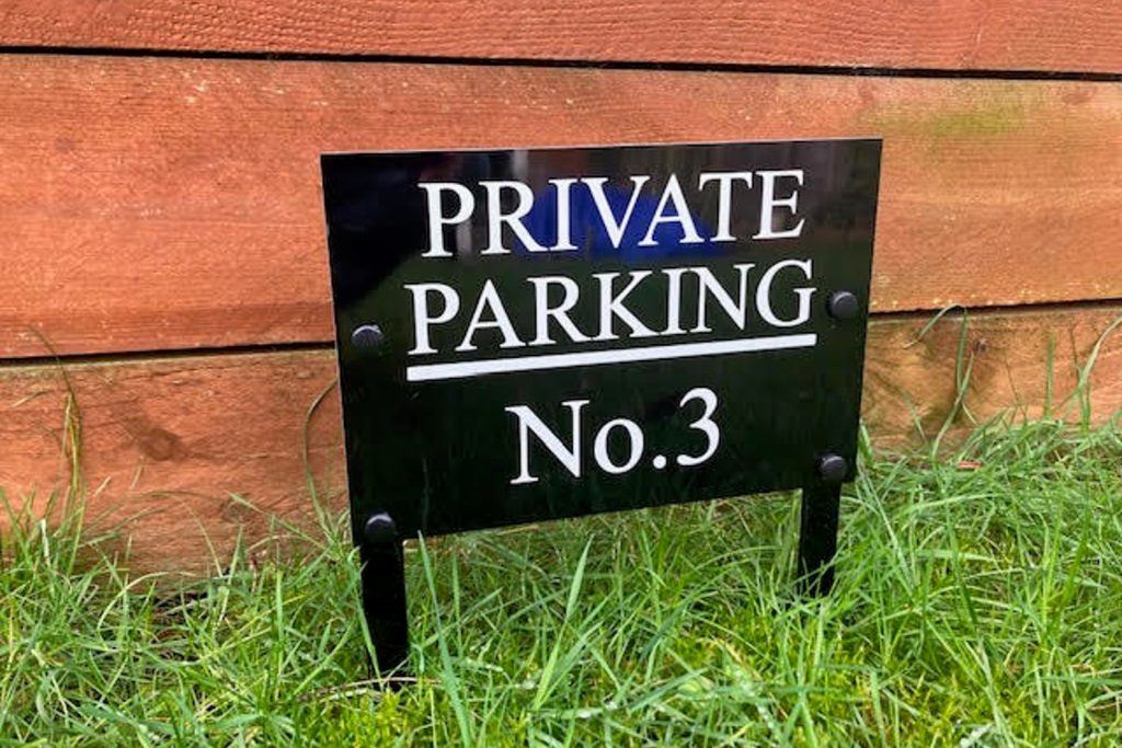 PERSONALISED PARKING SIGN WITH SPIKES.