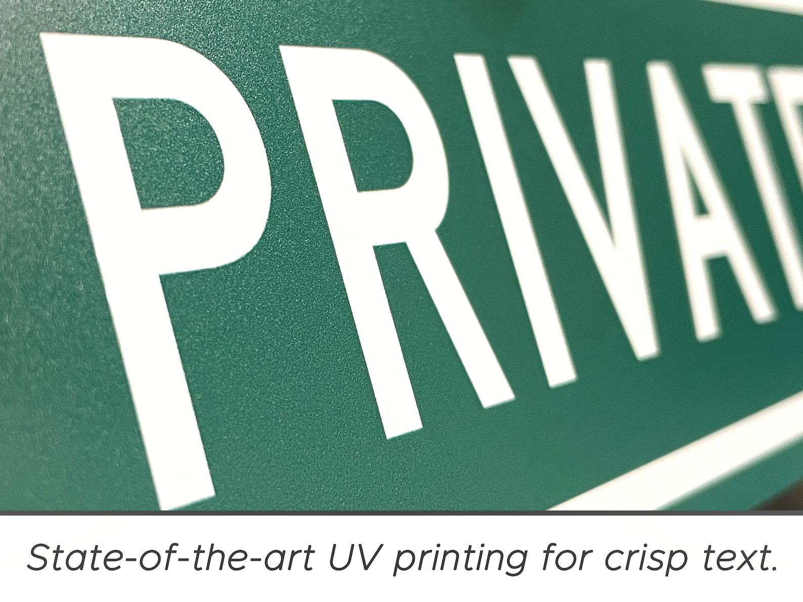 All signs are printed with a state-of-the-art UV printer, which bonds the ink directly to the sign for maximum durability inside or outside. No vinyl or painted stencils are used which means no peeling and ensures a crisp, perfect image that will last for years 🙂