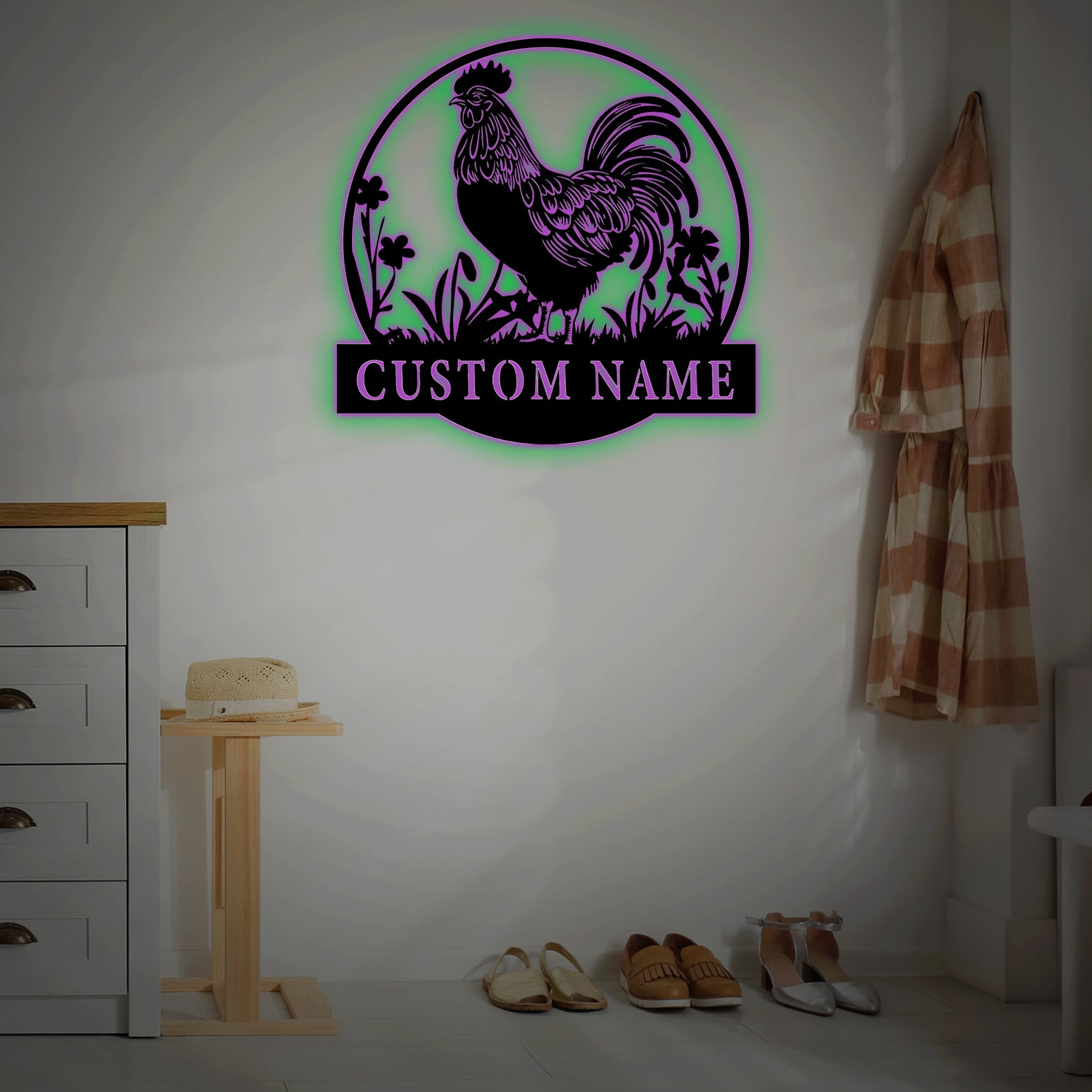 Custom Rooster Metal Wall Signs-Personalized Rooster Metal Wall Art-Hen House Coop Sign-Chicken Coop Name Signs-Chicken Farmhouse Decor