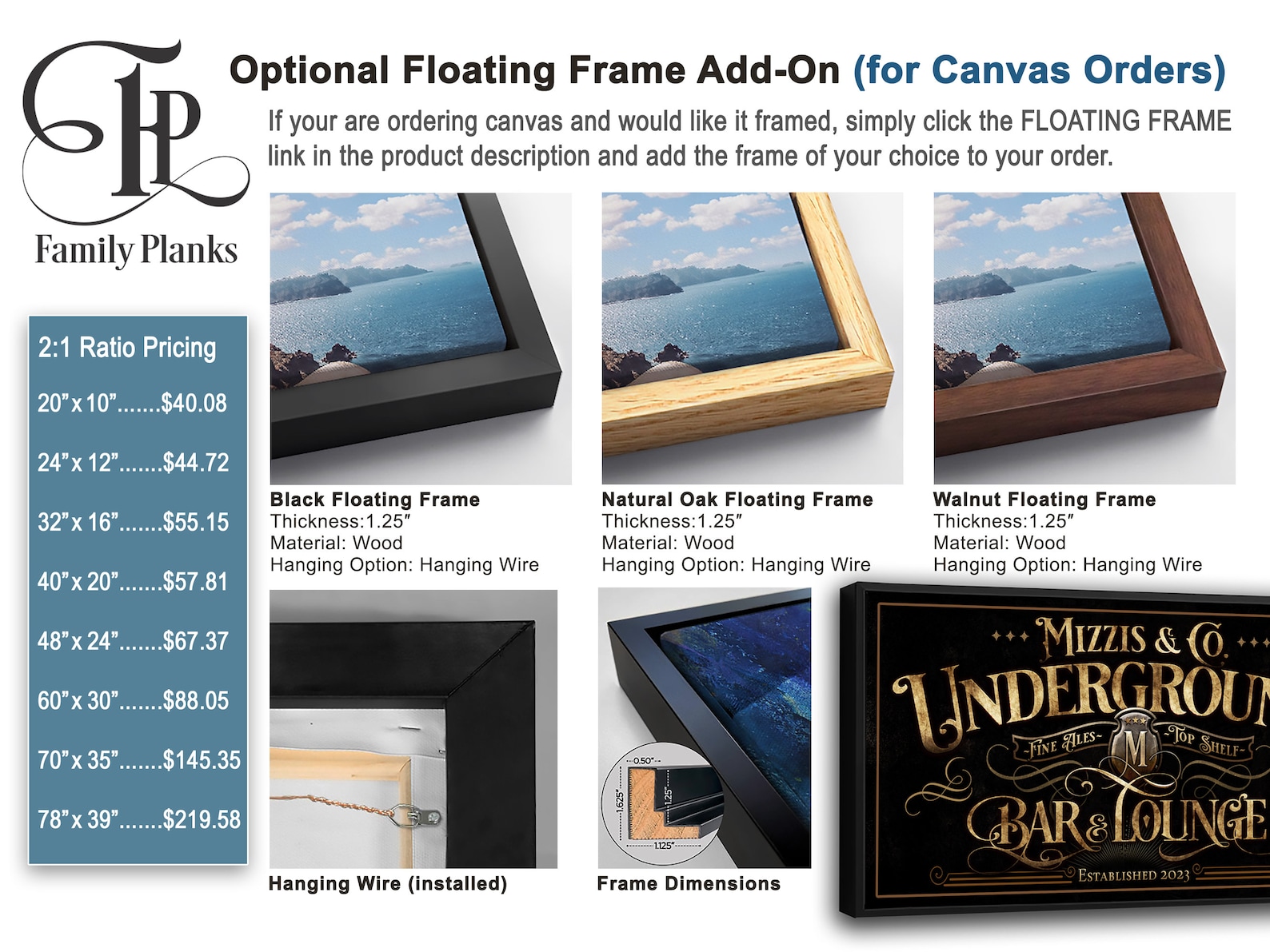 We will install a sawtooth hanger on the back of your canvas or leave it off if requested.