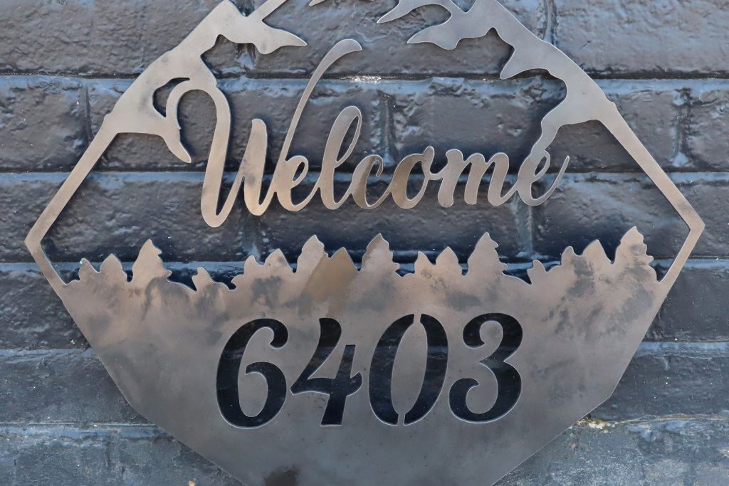 Use this rustic welcome sign to display your house number in a scene of majestic mountains and lush woods. This metal address sign has a sophisticated look with a rustic feel that will add character and charm to any home.