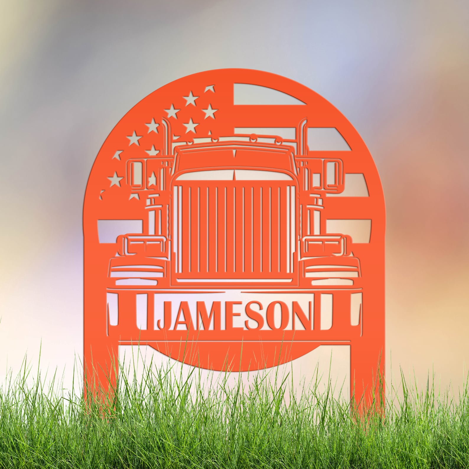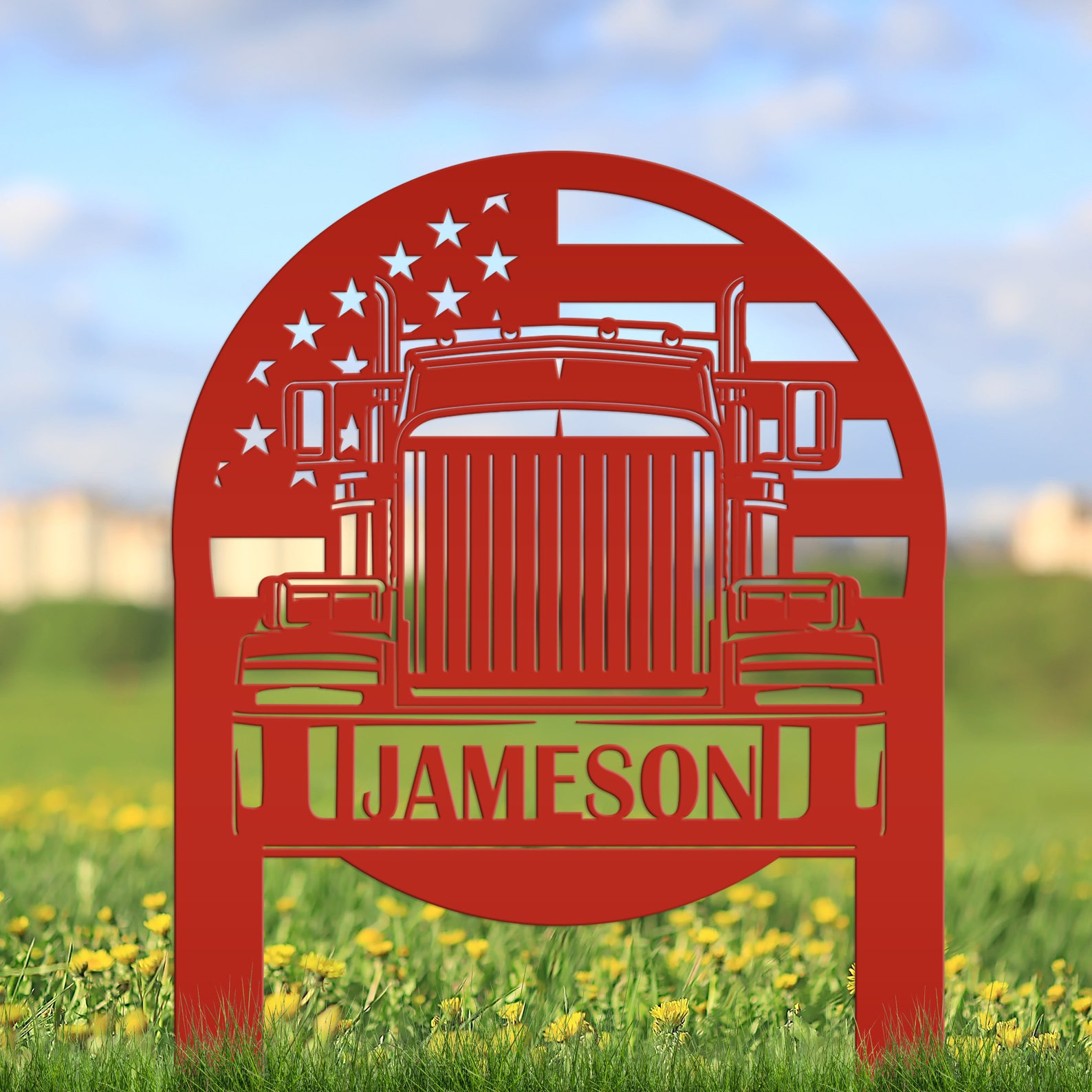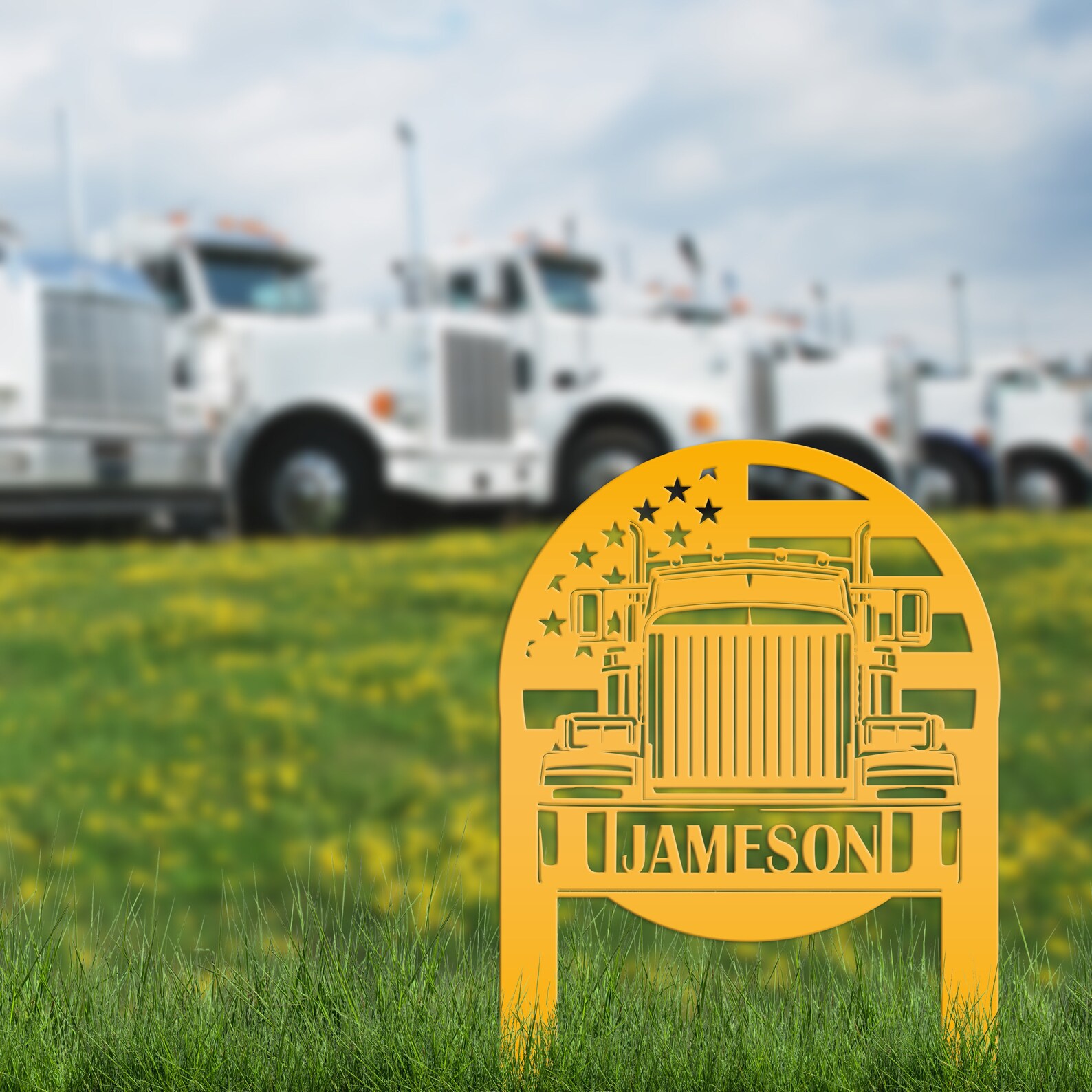 Enhance your landscaping with our unique 18 Wheeler Yard Stake. This metal custom diesel shop sign can be personalized with your last name or business name, making it a perfect trucking company lawn decor. Crafted from durable steel, this semi truck decor is built to last and adds a touch of charm to any outdoor space. Make a statement with a custom-made yard stake that showcases your love for 18 wheelers and adds a personalized touch to your exterior.