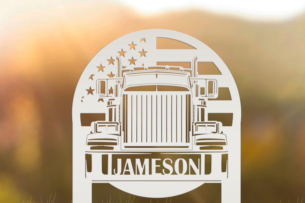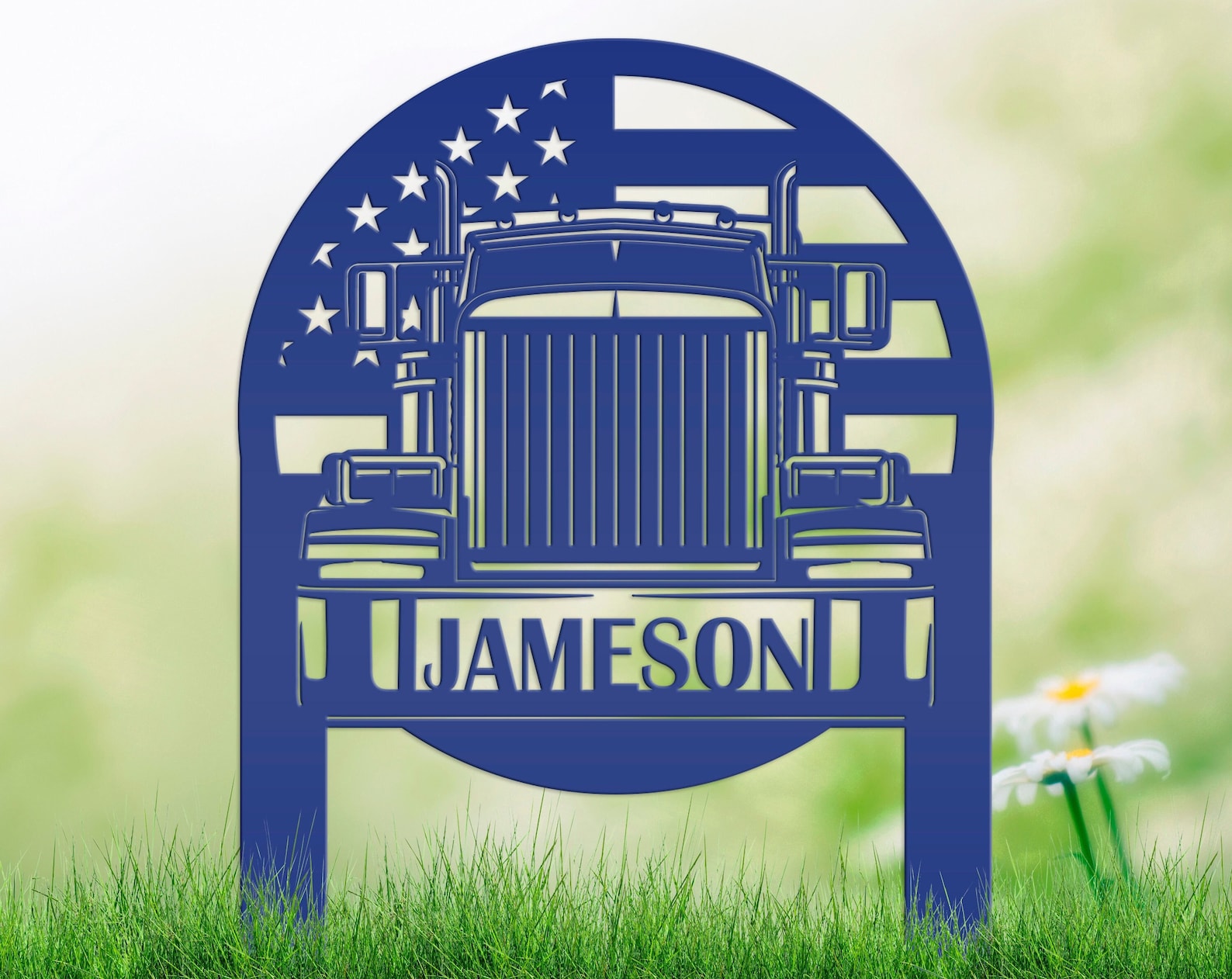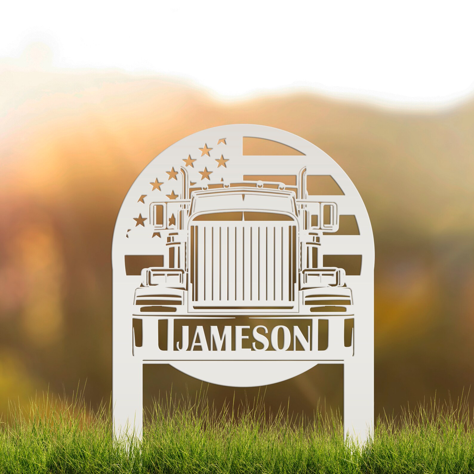 Enhance your landscaping with our unique 18 Wheeler Yard Stake. This metal custom diesel shop sign can be personalized with your last name or business name, making it a perfect trucking company lawn decor. Crafted from durable steel, this semi truck decor is built to last and adds a touch of charm to any outdoor space. Make a statement with a custom-made yard stake that showcases your love for 18 wheelers and adds a personalized touch to your exterior.