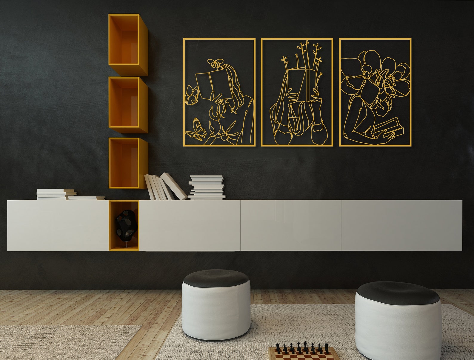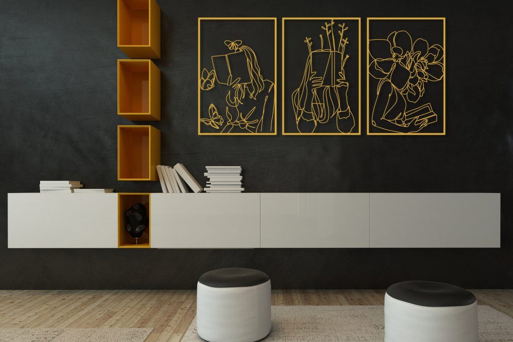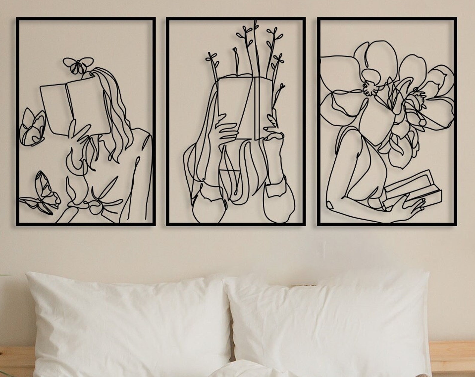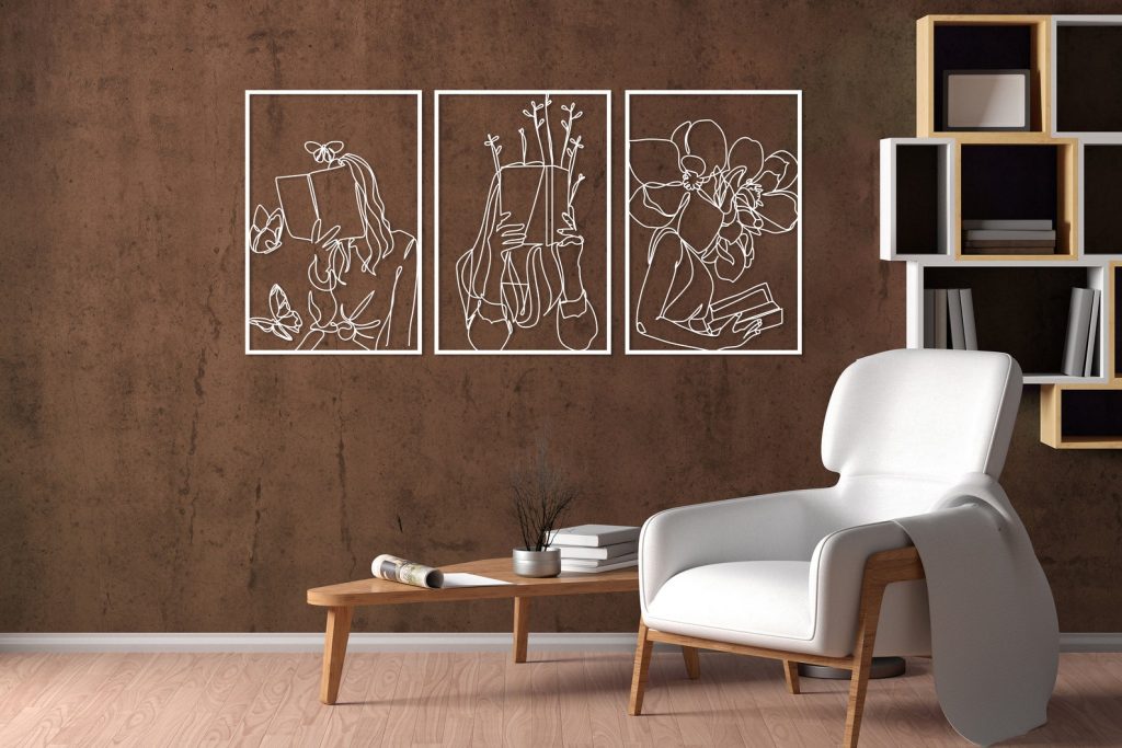 Set of 3 Bookish Metal Wall Art, Library Decor Gift