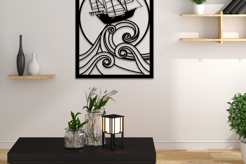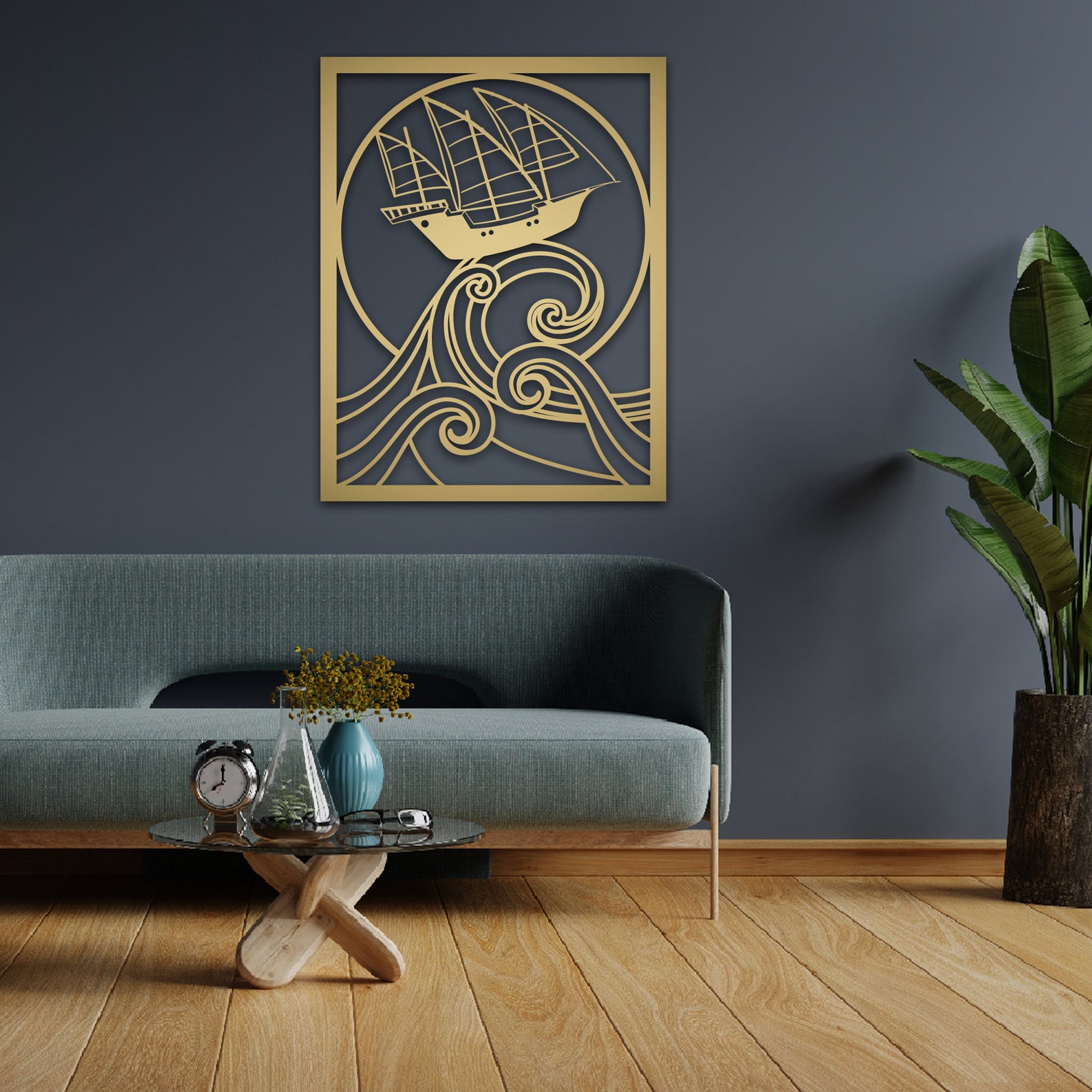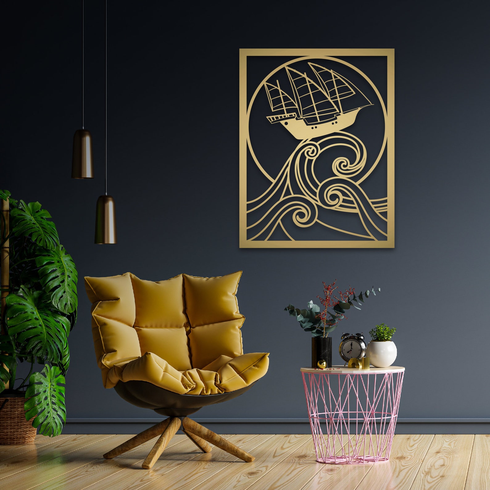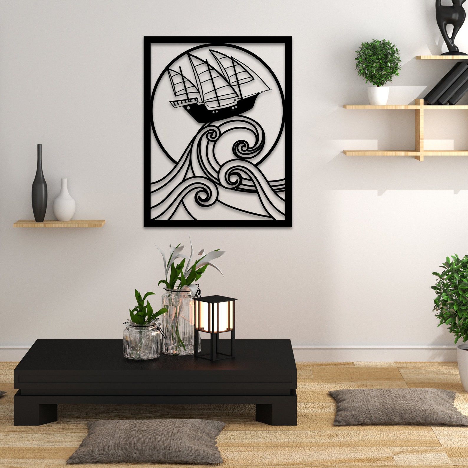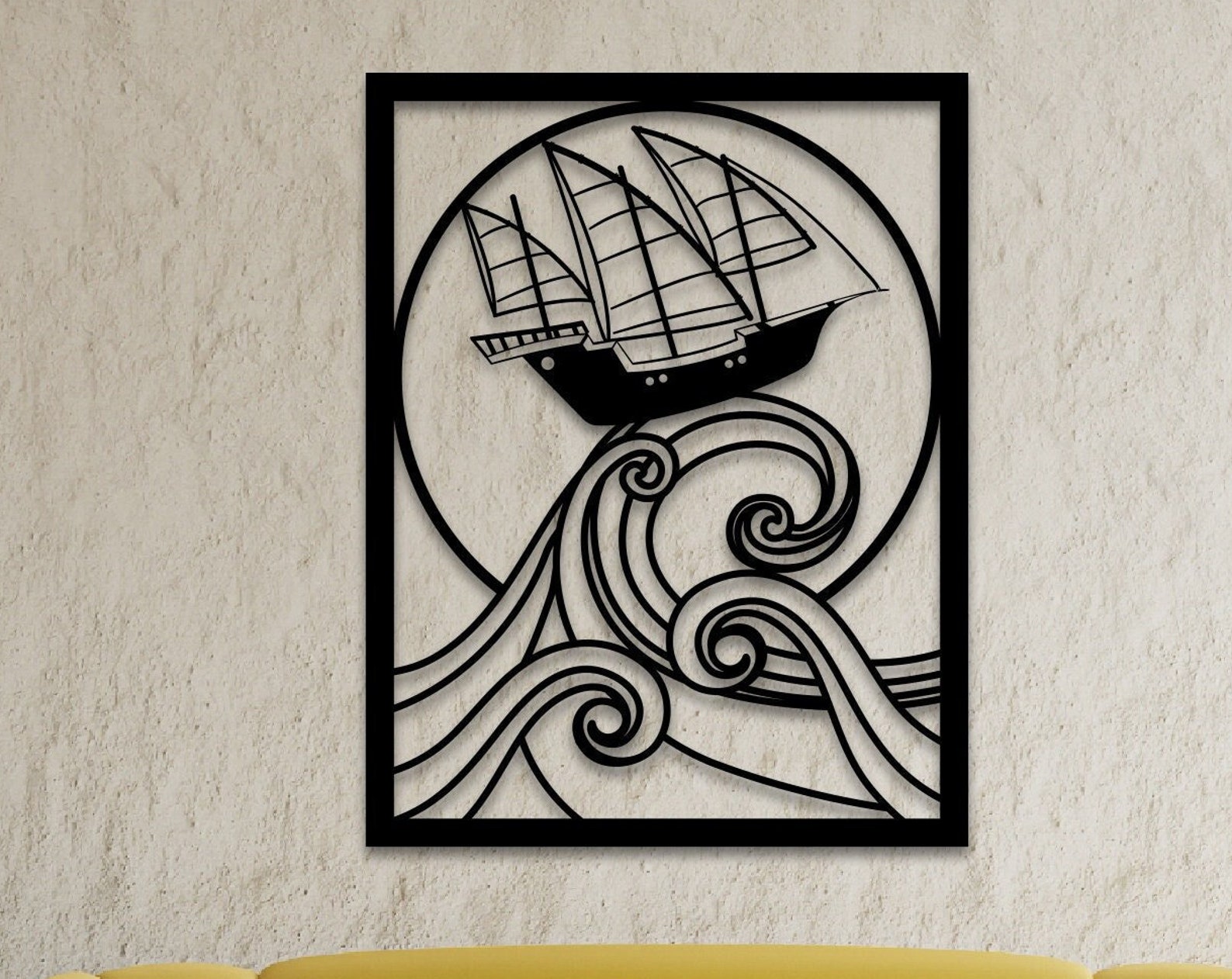 Ship and Wave Metal Wall Art,Ship on Waves Metal Wall Decor, Boho Home Decor, Above Bed Decor, Large Wall Art, Housewarming Gift, Yacht Deco