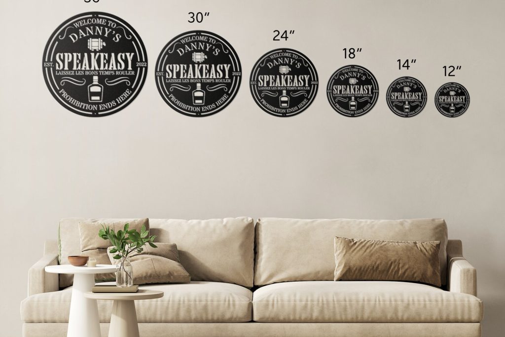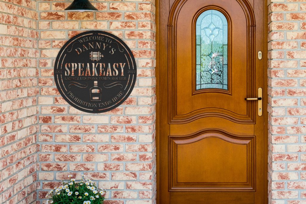 Transform your home into a private oasis of indulgence with this personalized speakeasy home bar sign. Crafted with meticulous attention to detail, this metal sign captures the allure and mystique of the Prohibition-era speakeasies. Customize it with your desired name or message, adding a touch of personalization that reflects your unique style and taste. Hang it above your home bar or entrance to create an atmosphere reminiscent of secret gatherings and hidden delights. The vintage-inspired design, complete with ornate lettering and art deco accents, adds an air of sophistication to any space. Whether you9;re hosting intimate gatherings or simply seeking a cozy retreat, this personalized speakeasy home bar sign sets the stage for unforgettable moments and clandestine celebrations.