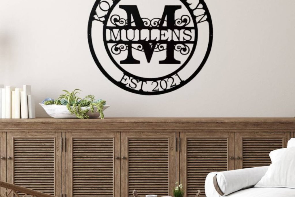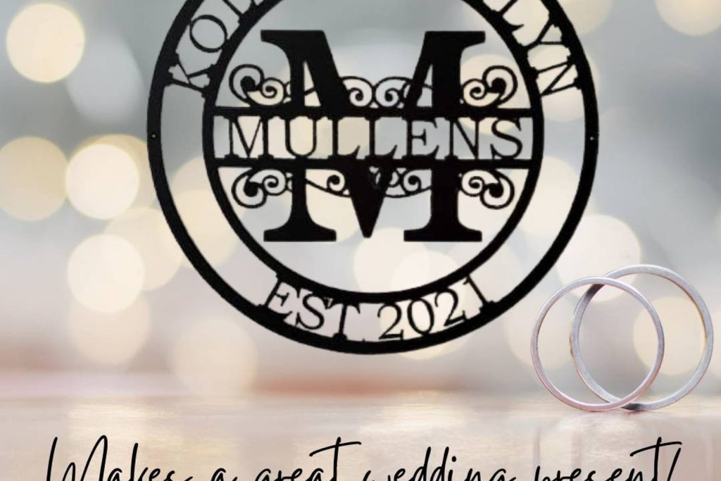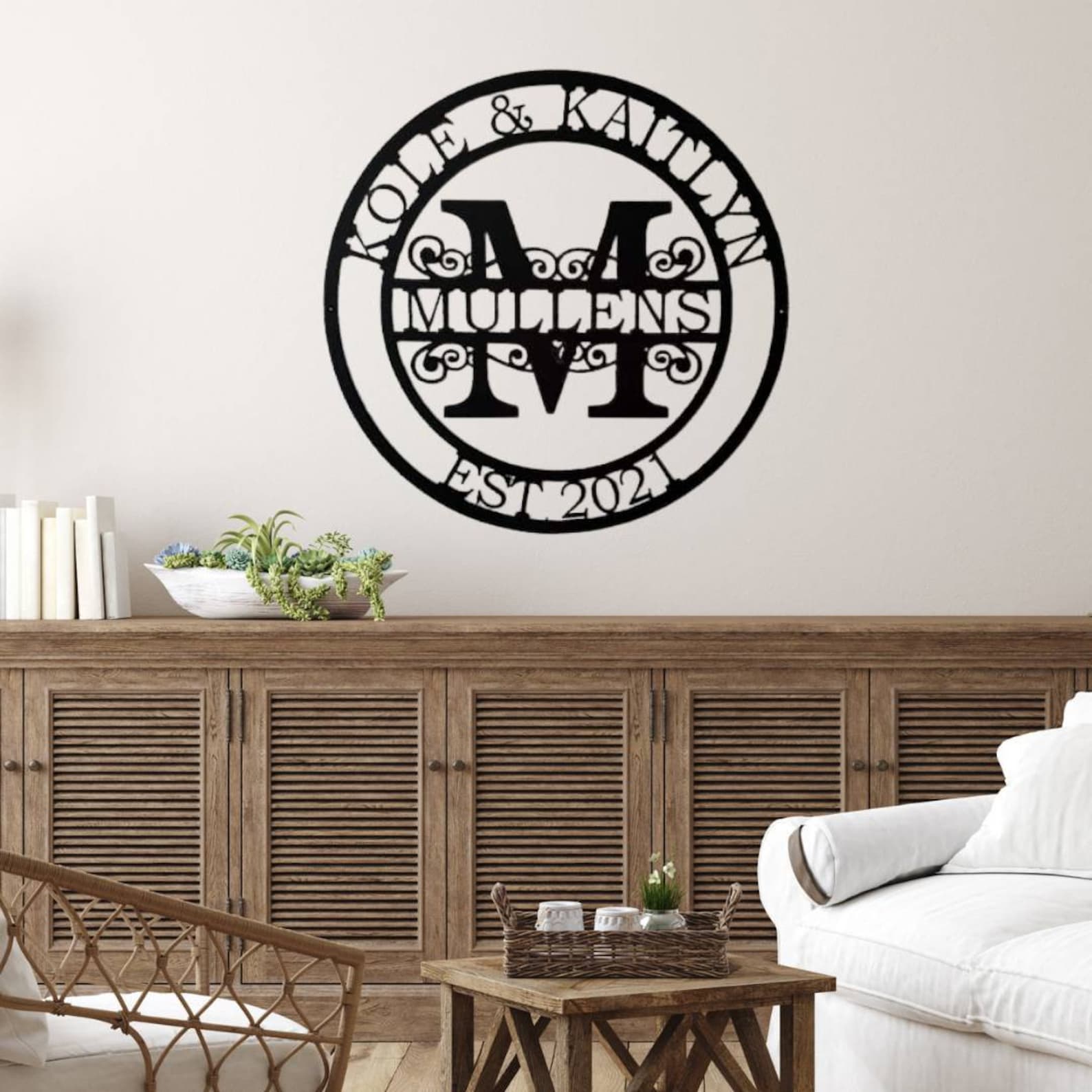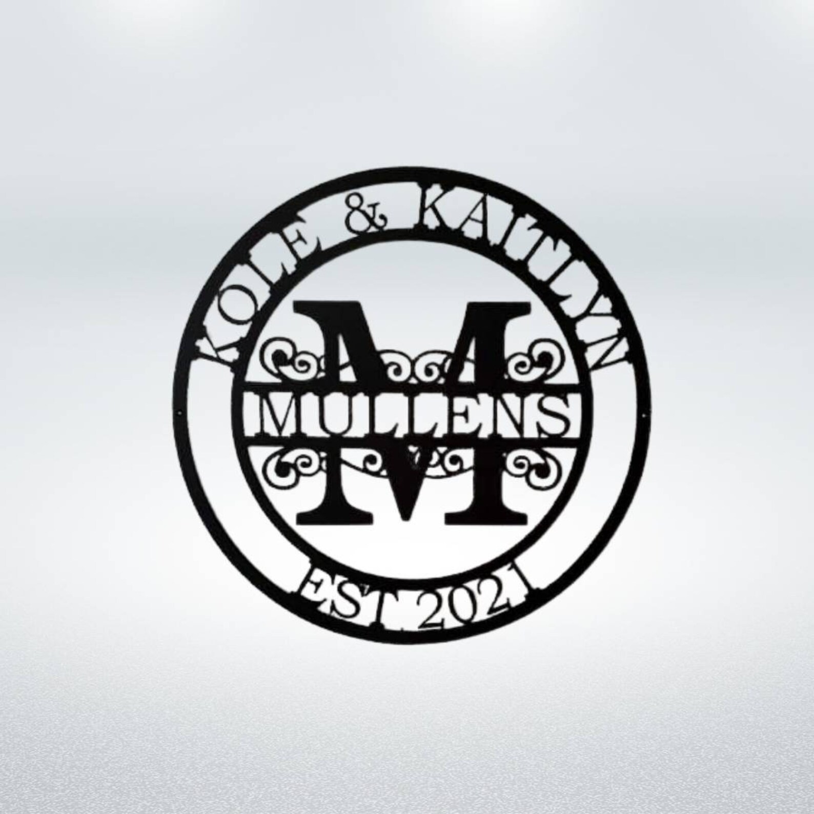 Celebrate special moments with our Custom Metal Sign, featuring an Elegant Split Letter Monogram. This Established Monogram Metal Sign is more than a decor piece; it9;s a timeless and personalized statement. Crafted with precision, this metal sign is a perfect Wedding Gift, adding a touch of sophistication to any space. Personalized with your chosen monogram, it becomes a unique and thoughtful addition to your home. Elevate your decor with this custom metal sign, marking significant milestones and creating a lasting impression. Embrace elegance and make a statement with this Personalized Sign, a perfect blend of style and sentiment for any occasion.