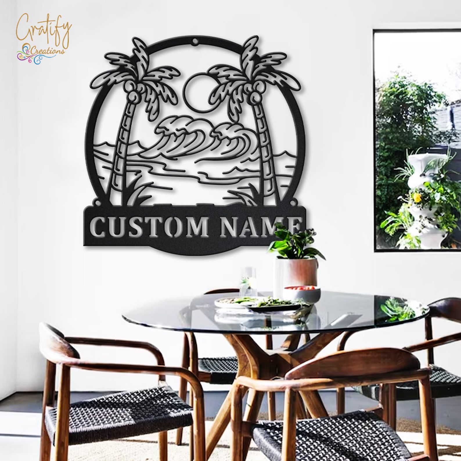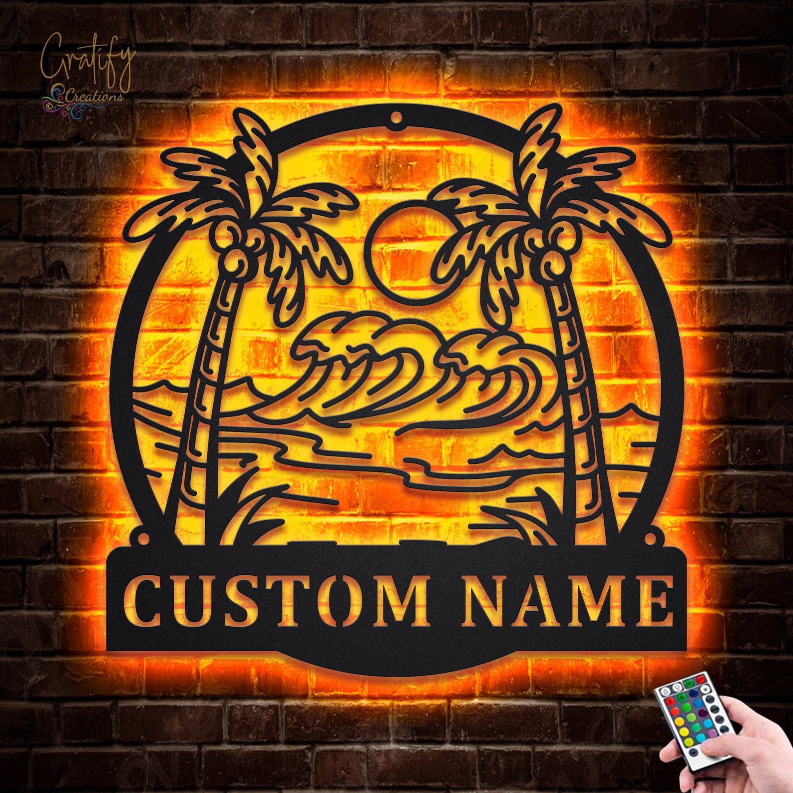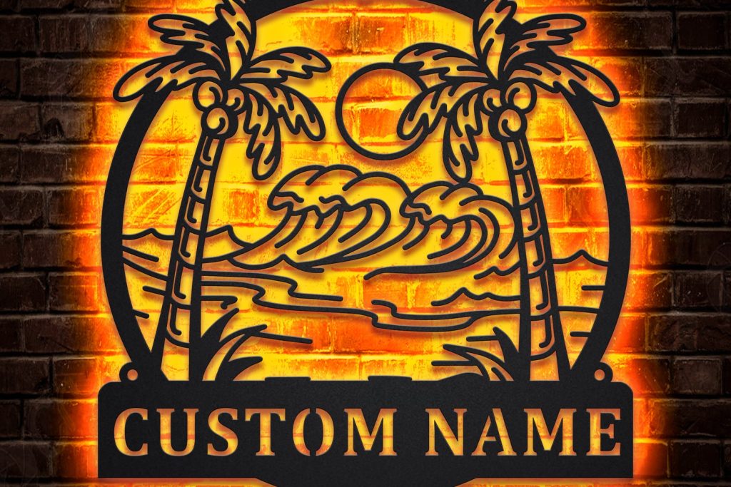 Summer Palm Tree Metal Sign with LED – Vacation Decor