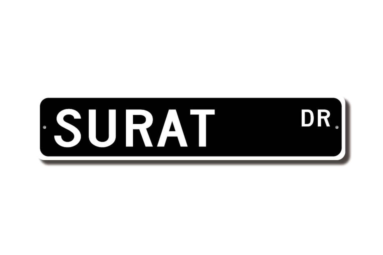 Surat lovers check out this awesome street sign! This will make the perfect piece for any Surat traveler, or maybe you are a Surat native looking for a cool decor piece ! Made of premium aluminum -it will stand the test of time. This sign will look great in any room, home den, man cave, or office! Get this sign to commemorate your trip to Surat !