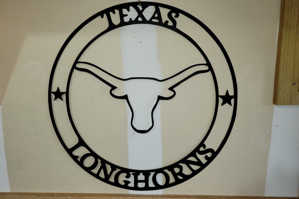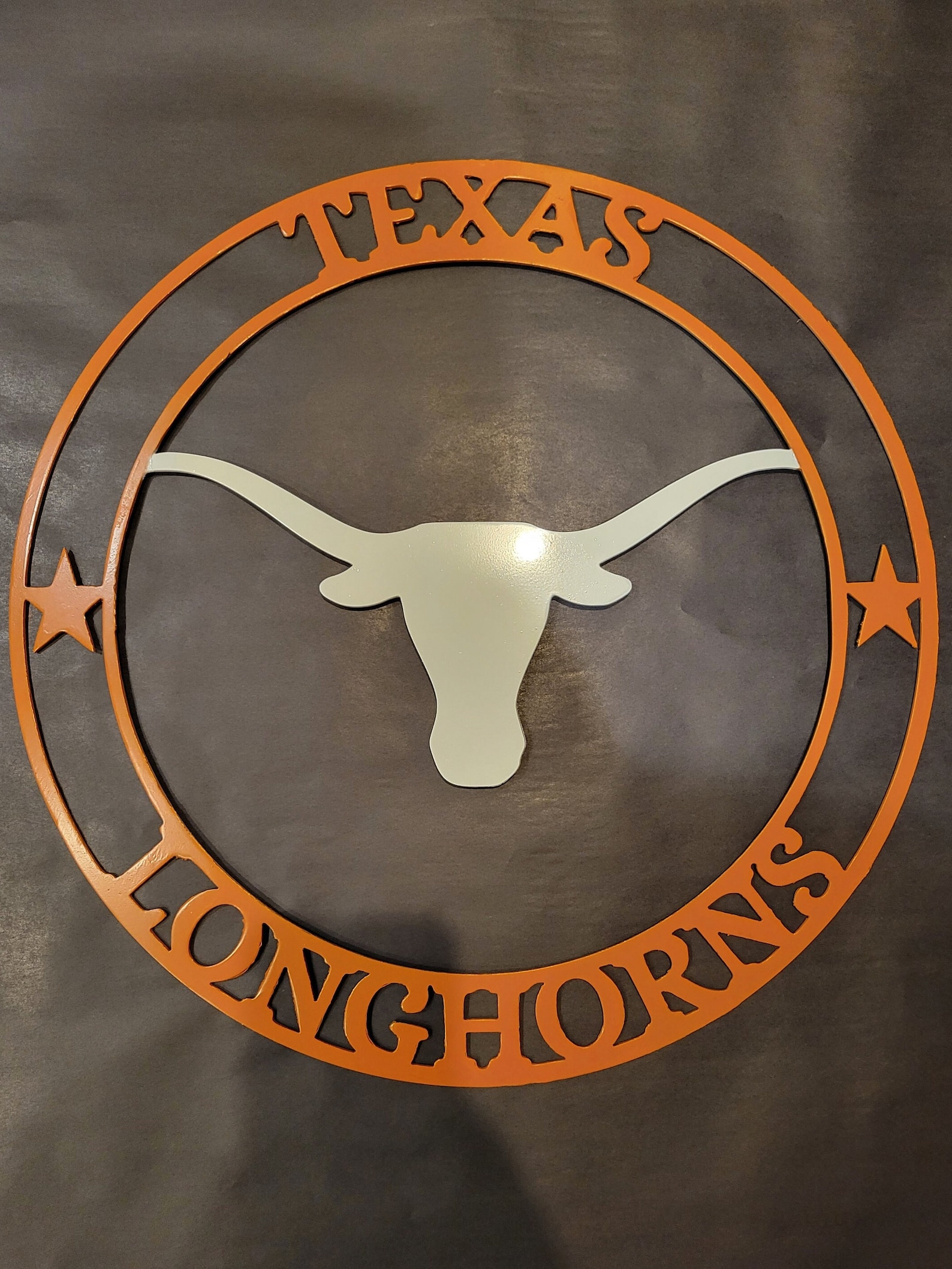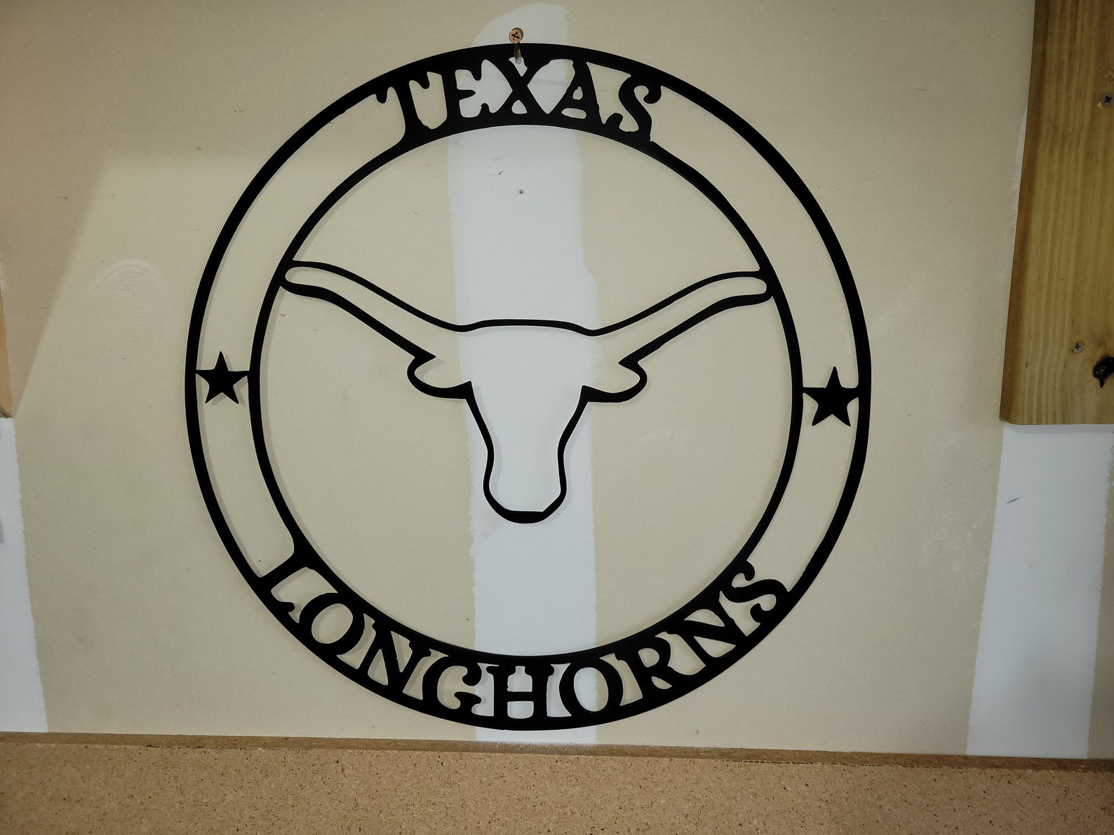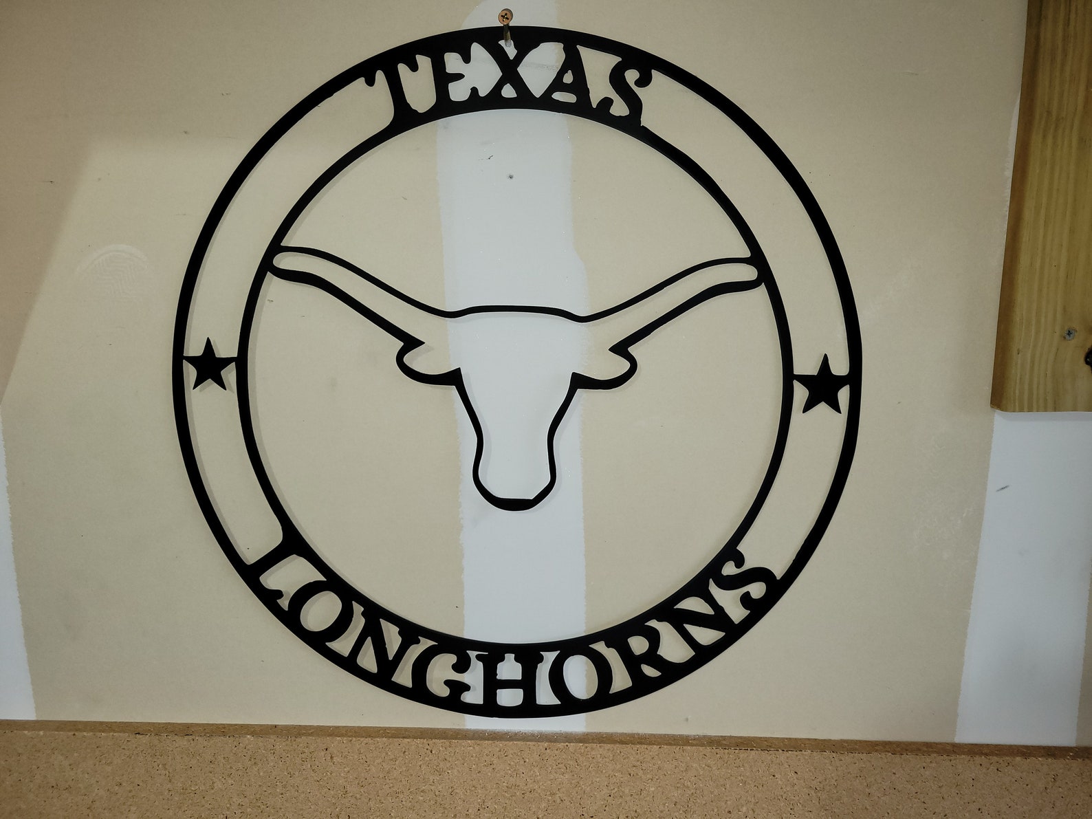 Introducing our Texas Longhorns Metal Sign, a must-have for any fan of this iconic team. Crafted from durable metal, this sign features the bold and unmistakable "Texas Longhorns" logo, making it the perfect addition to your home, office, or game room. Show off your team pride and support with this eye-catching sign that is sure to impress fellow fans. Whether you9;re a die-hard Longhorns supporter or looking for a unique gift, our Texas Longhorns Metal Sign is the ultimate choice.