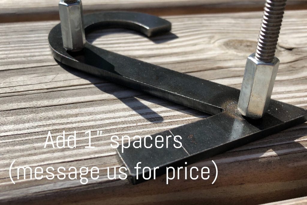 The incl studs will be 2 threaded studs welded to the back of each letter. Typically a letter will have 2 to 4 studs each. Letters with thin lines (less than thick) may not have enough surface area to weld a stud on the back. Please feel free to inquire prior to purchase. 1 spacers are also available for additional cost. Letters with spacers need lines at least 1/2" thick.