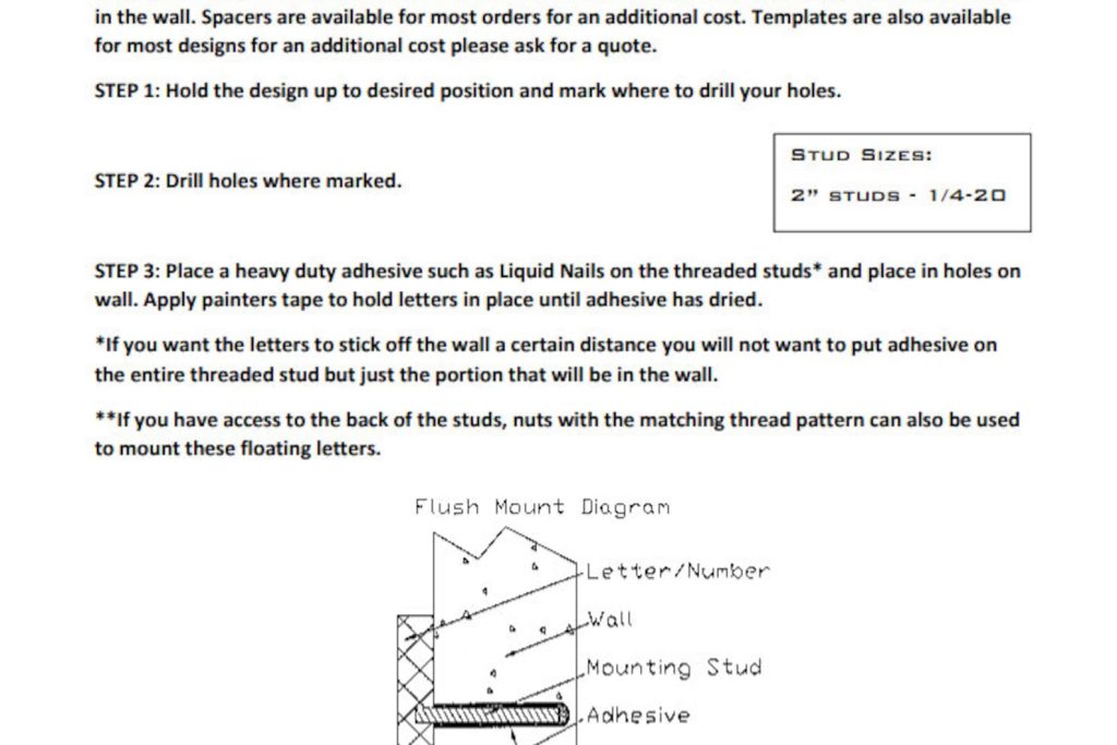 We offer printed paper mounting templates to help make installation easier – the price will vary depending on the size of your letters. Please message us for a quote.