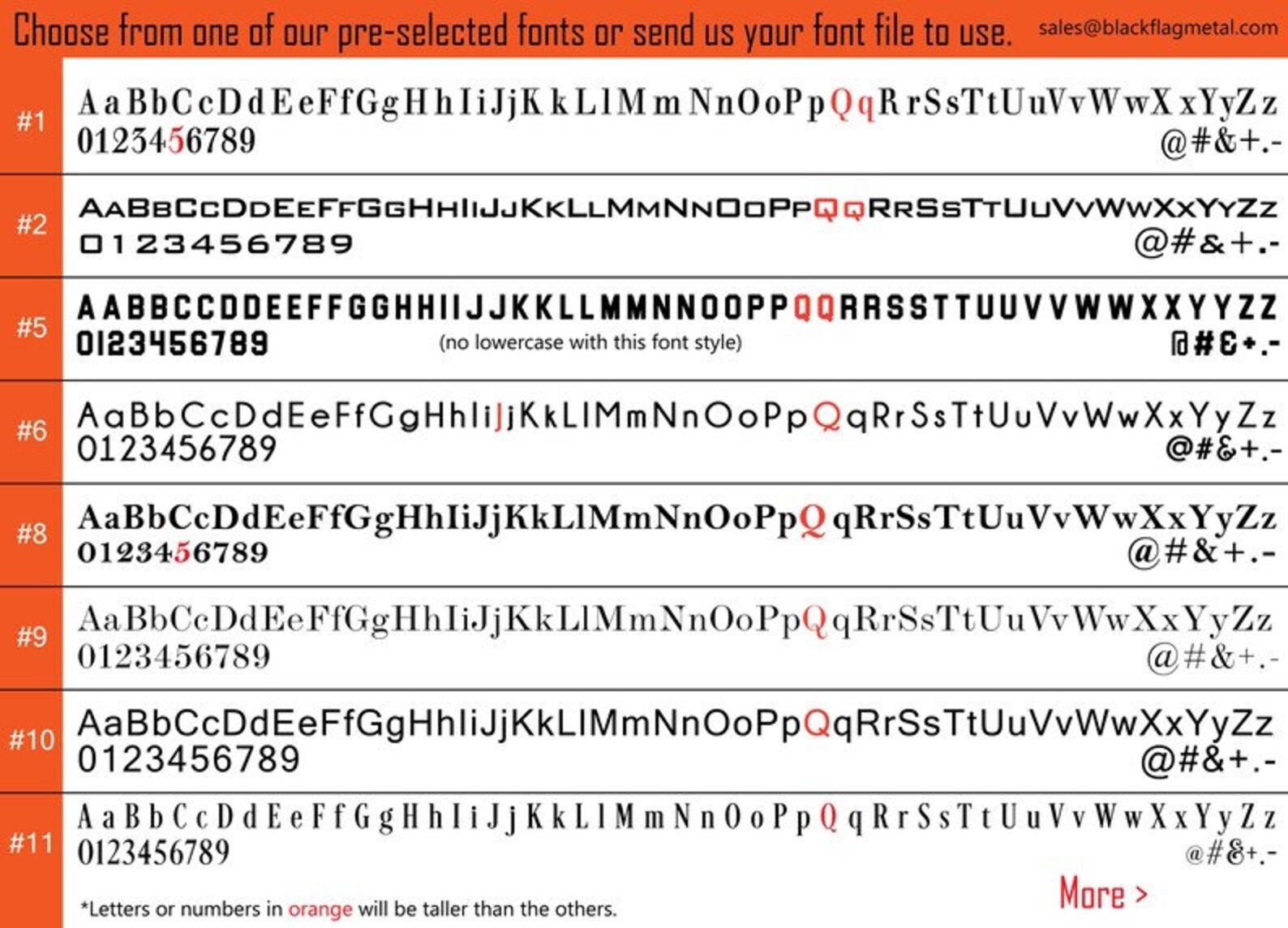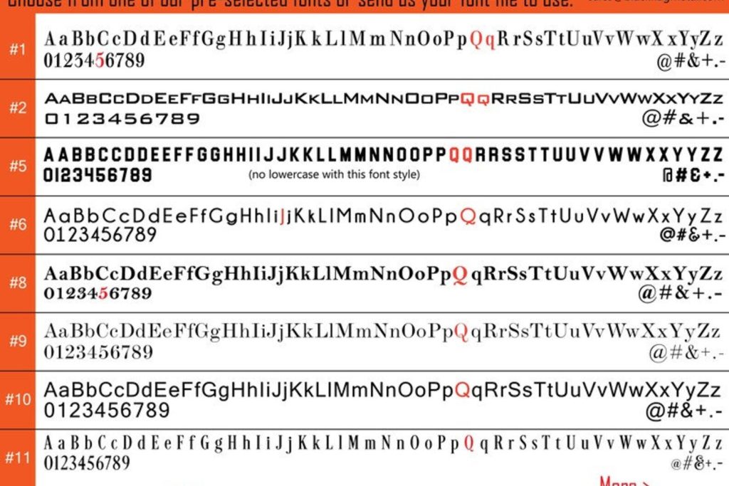 *Custom fonts must be a free font, otherwise additional charges will apply.