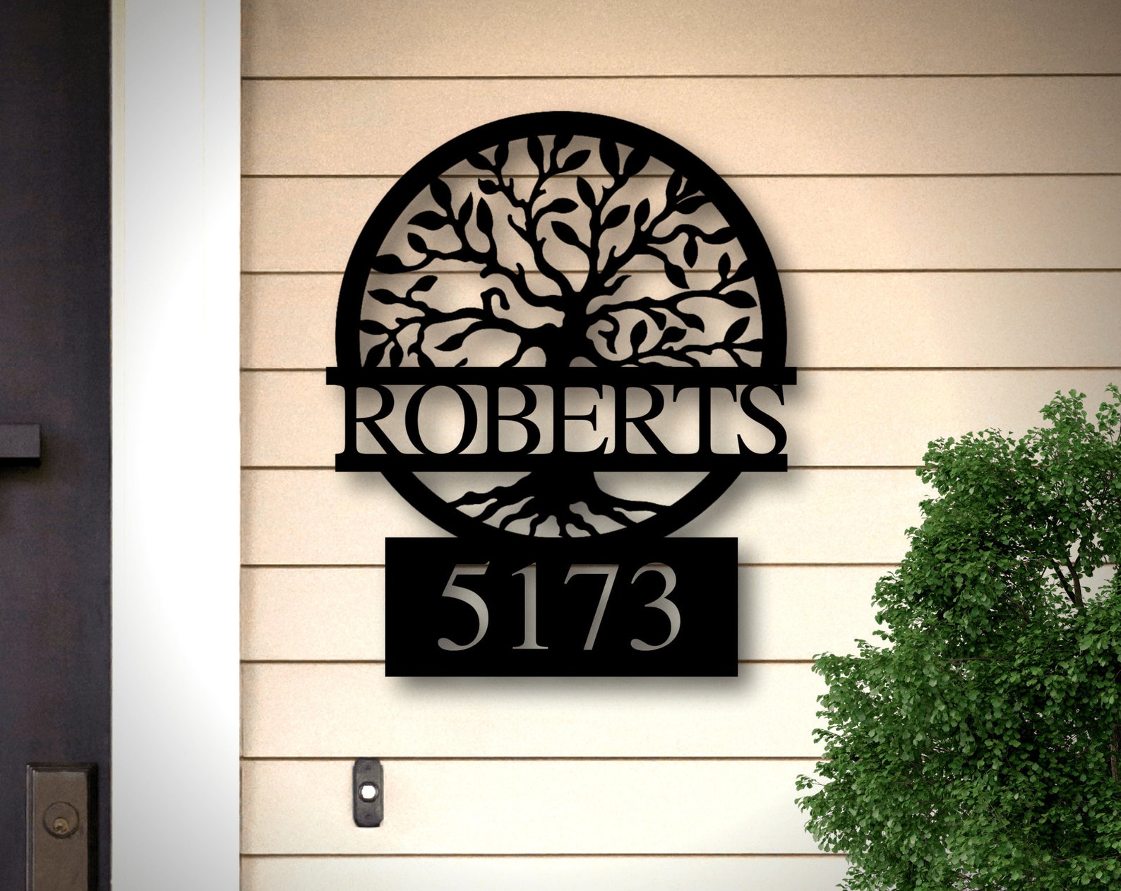 Tree of Life Metal Address Sign, Custom Front Decor