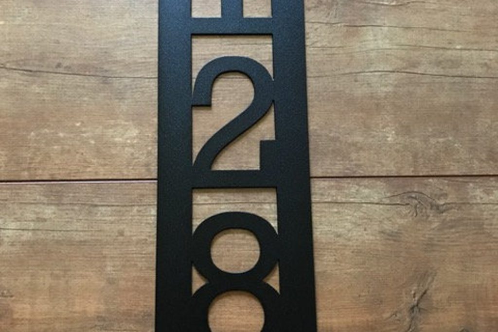 Vertical House Numbers Metal Sign, Modern Address Marker