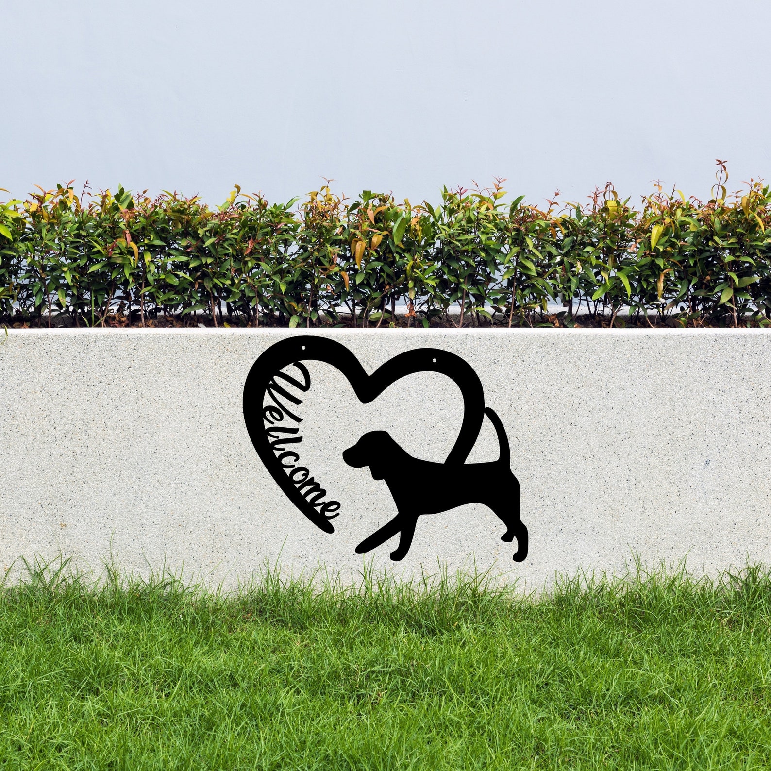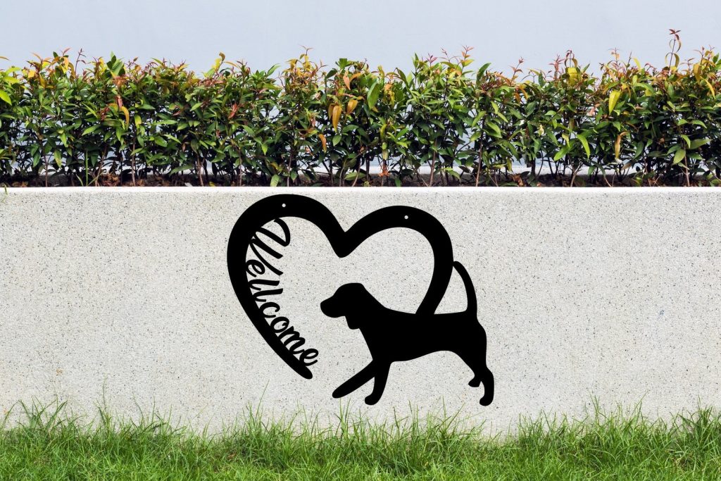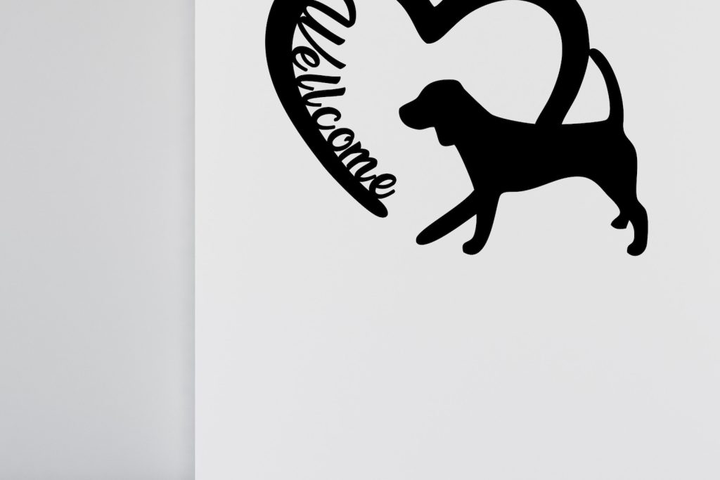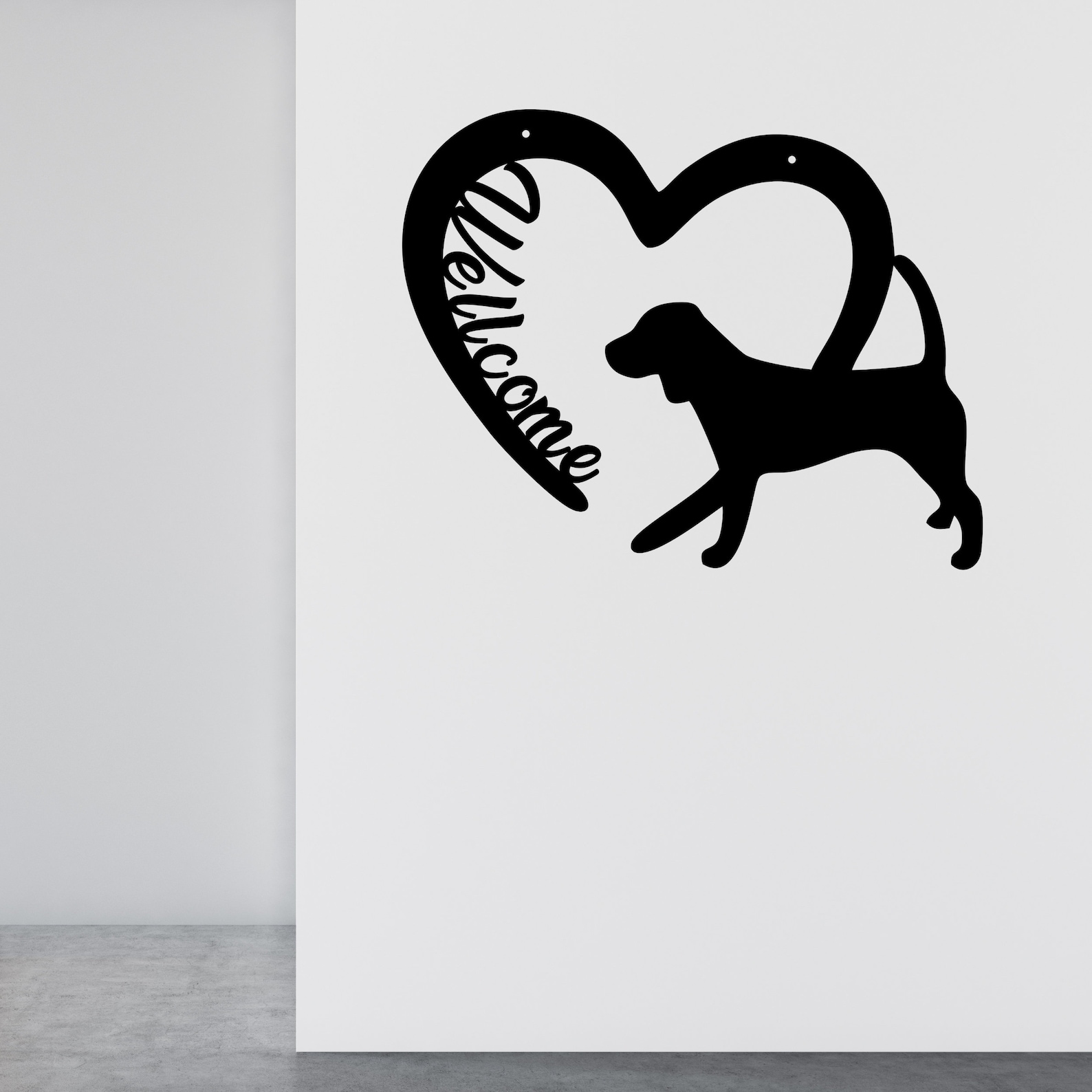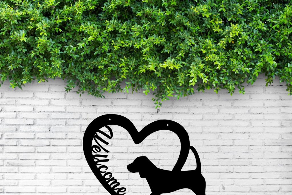 Welcome Dog Sign – Metal Heart Silhouette Decor